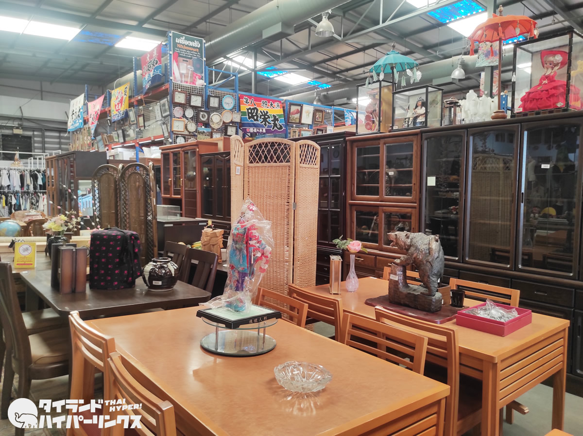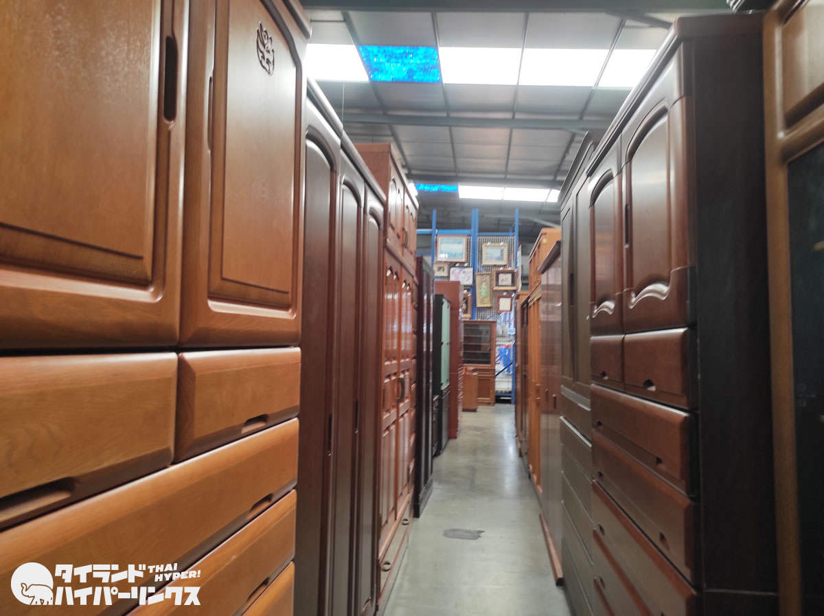 中古ながら、傷も少なくまだまだ使える家具の数々。箪笥や棚は5000バーツから1万バーツくらいが多いでしょうか。