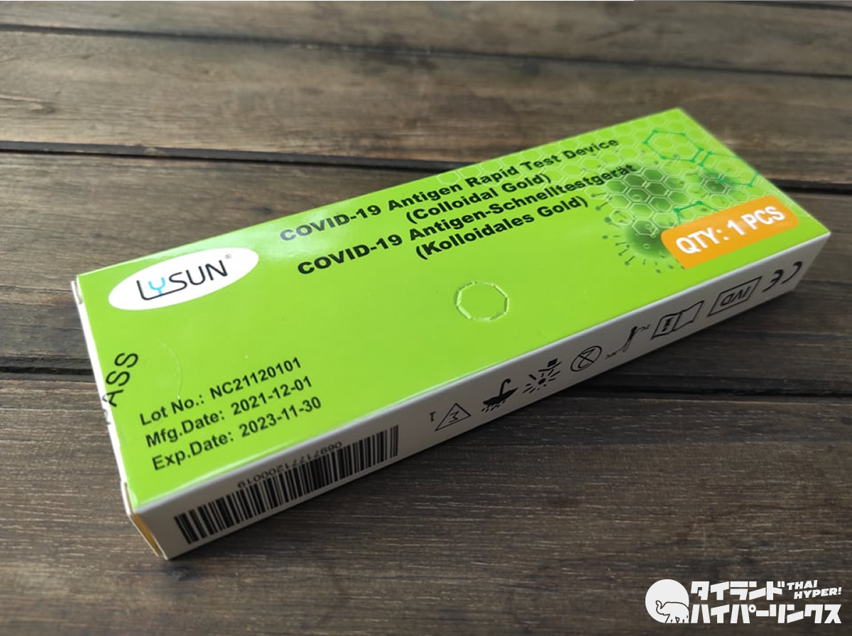 続いて薬局へ。レジ横に置かれていたATKの価格を聞いてみると、一つ150バーツ。それでも高いと思い「もっと安いのありますか?」と聞くと、出てきたのが「Lysun」というATKで、一つ70バーツ。このくらいの価格なら、気軽に何度も購入ができそうです。