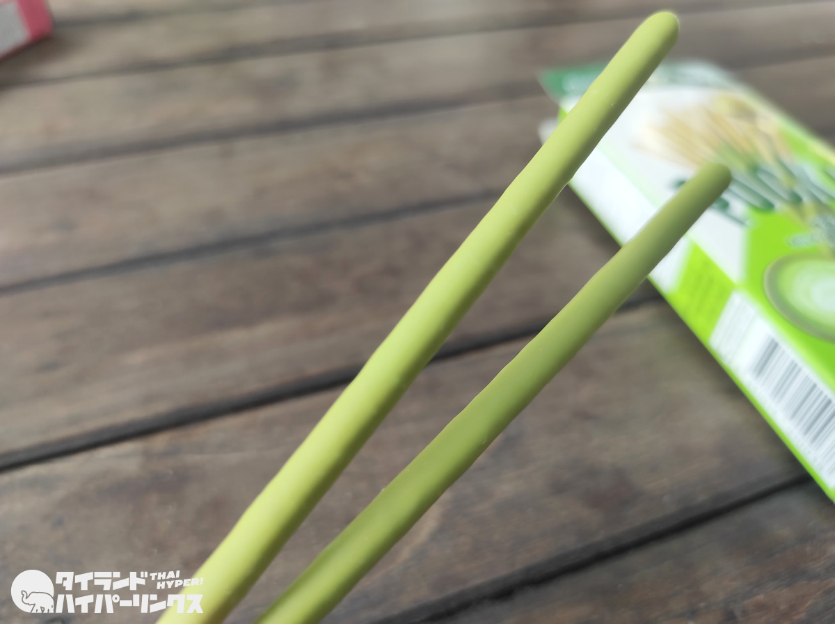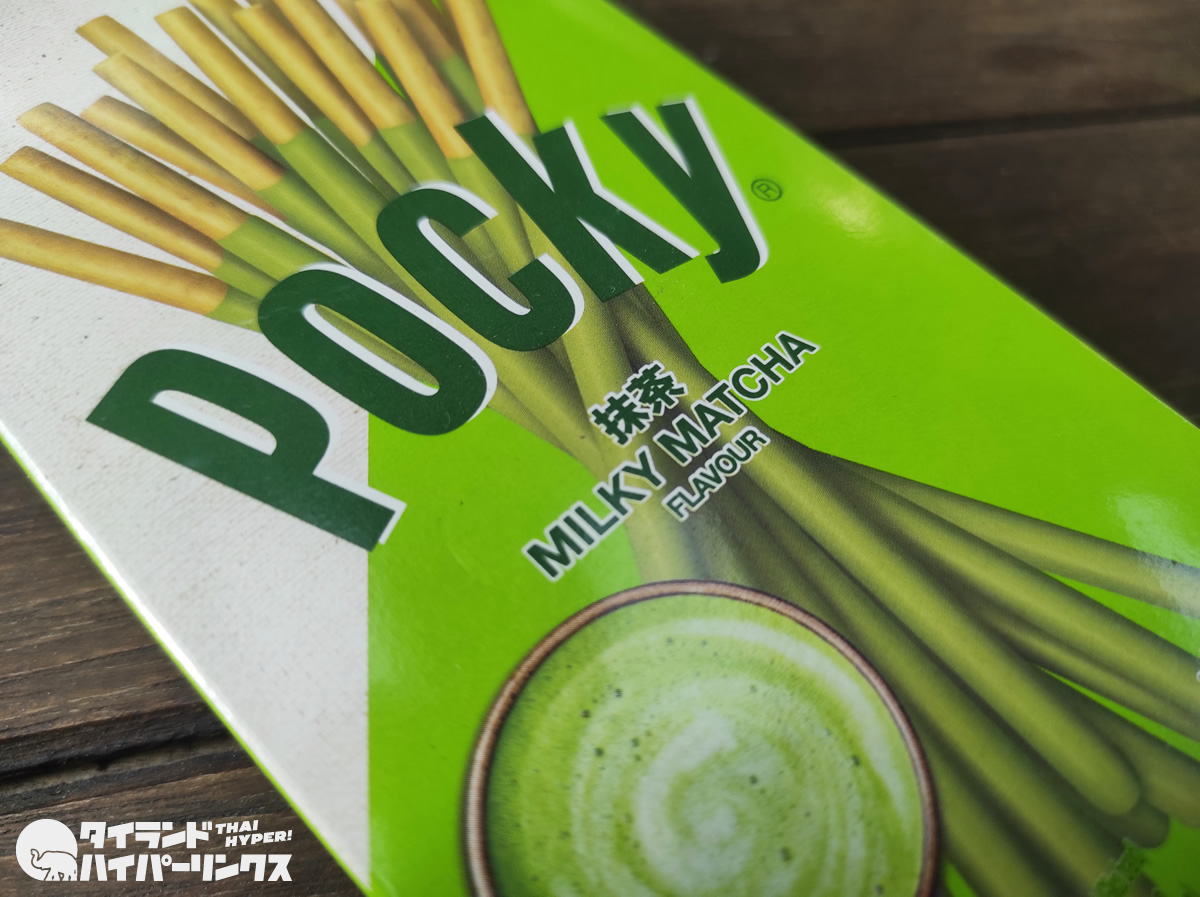 タイでも人気のポッキー。タイでしか買えないフレーバーなど色々なポッキーが販売されていますが、今回スーパーマーケットで購入したのは日本産抹茶を使用しているという「ミルキー抹茶」でした。