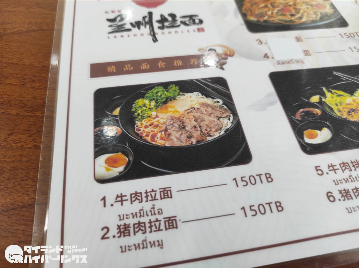 蘭州は回族などイスラム教徒が多い場所なので、蘭州ラーメンは牛肉を使いますが、タイでは牛肉を食べる人が少ないとのことで、豚肉の蘭州ラーメンも用意されています。