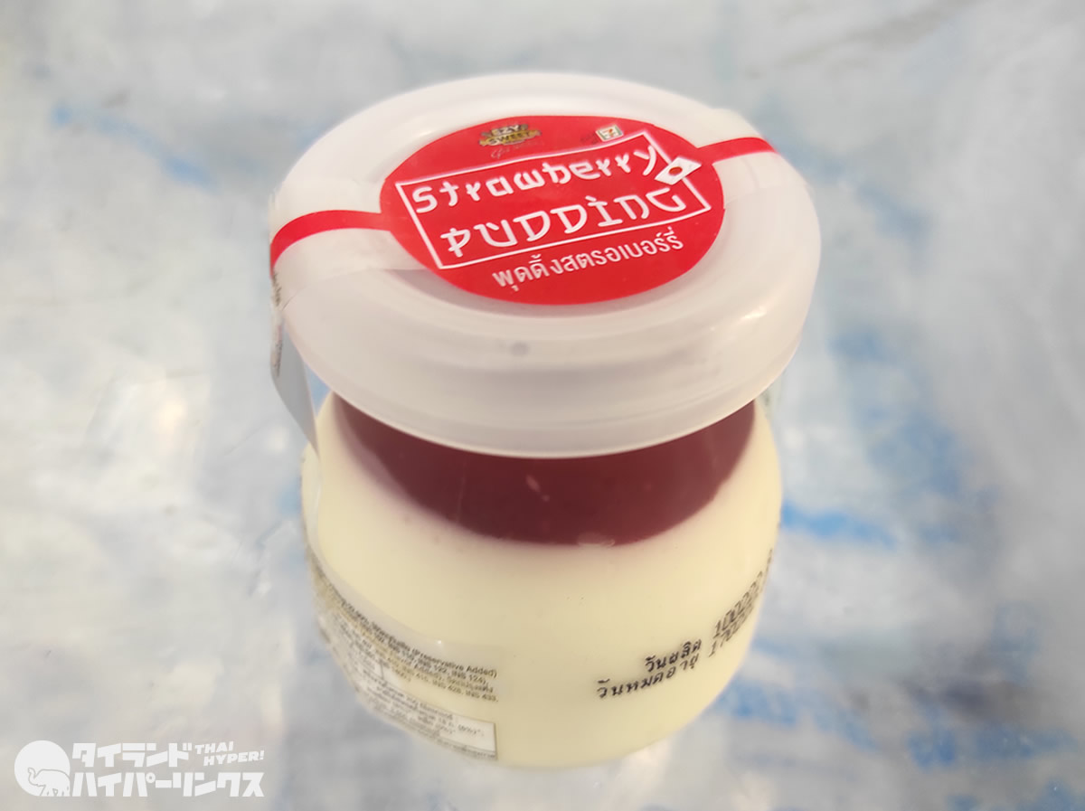 パッケージに日の丸がついたセブンイレブンのスイーツに新製品が登場。2022年2月10日から3月23日までは販売されるのが「Strawberry Pudding(พุดดิ้ง สตรอเบอร์รี )」です。つまり「いちごプリン」ですね。
