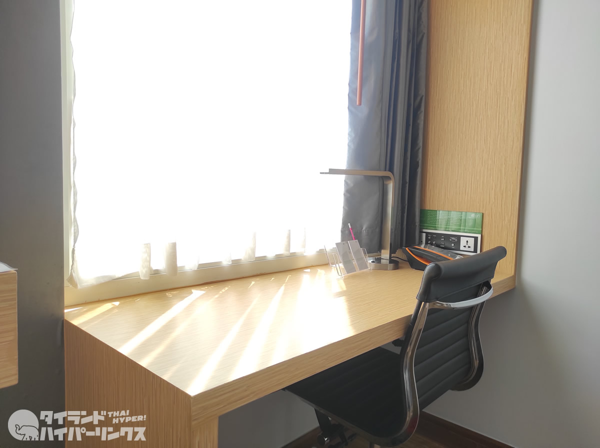 テレビに加えて、デスクも設置されていて、滞在中もお仕事をしなければならない方にはありがたいですね。