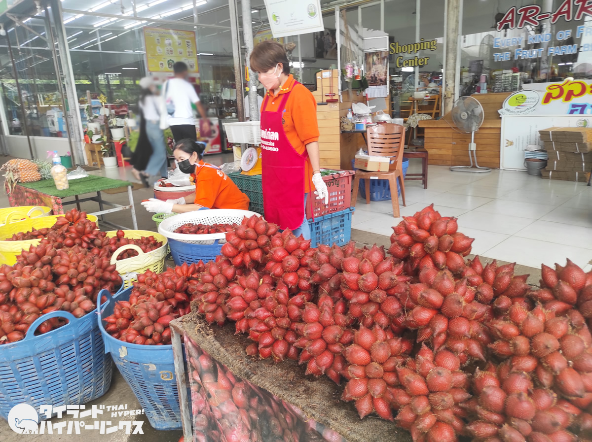 この日に訪れたのは、チャンタブリ県のスクンビット通り沿いにある土産店「Ar Ar Souvenir」。ここの入り口で売られていたのは、サラクというフルーツでした。サラクはタイ語で「สละ(サラ)」、日本語で「サラクヤシ」です。