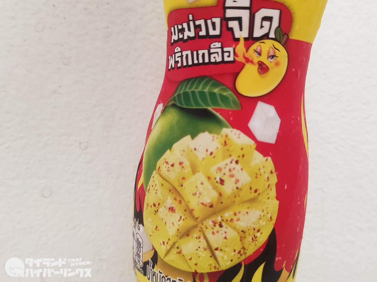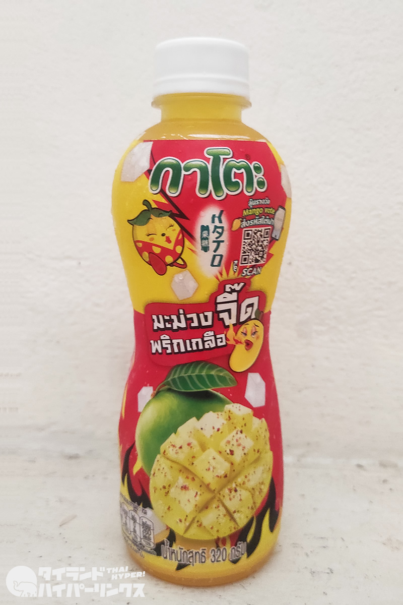 ココナッツゼリー入りジュースブランドのKato(กาโตะ)から発売されたのは、マンゴージュース「塩と唐辛子のマンゴー(มะม่วงจี๊ดพริกเกลือ マムアンチッドプリッククルア)」です。
