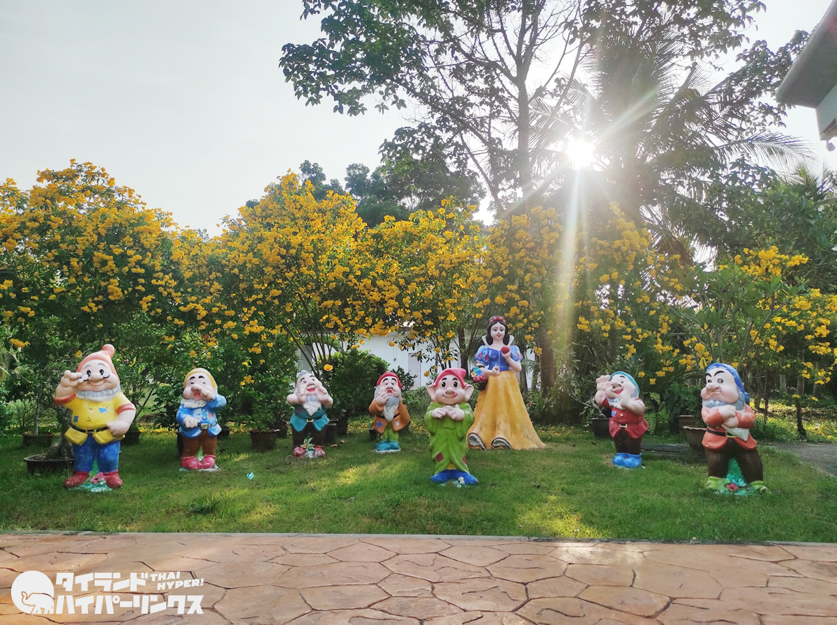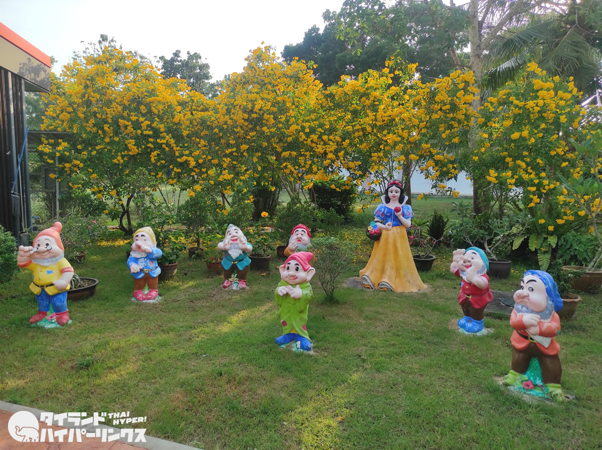 きれいに手入れがされているガソリンスタンドのトイレ横の芝生。そこに並んでいたのは、お姫様の人形と、小さなおじさんたち7人の人形。どこかで見たことがある気がするのですが、きっと勘違いですね!