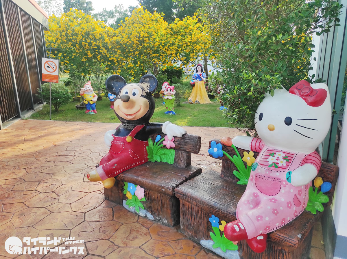 バンコクからタイ東部への旅。道中にあるガソリンスタンドのトイレの横には、どこかで見たことがあるような人形たちが並んでいました。