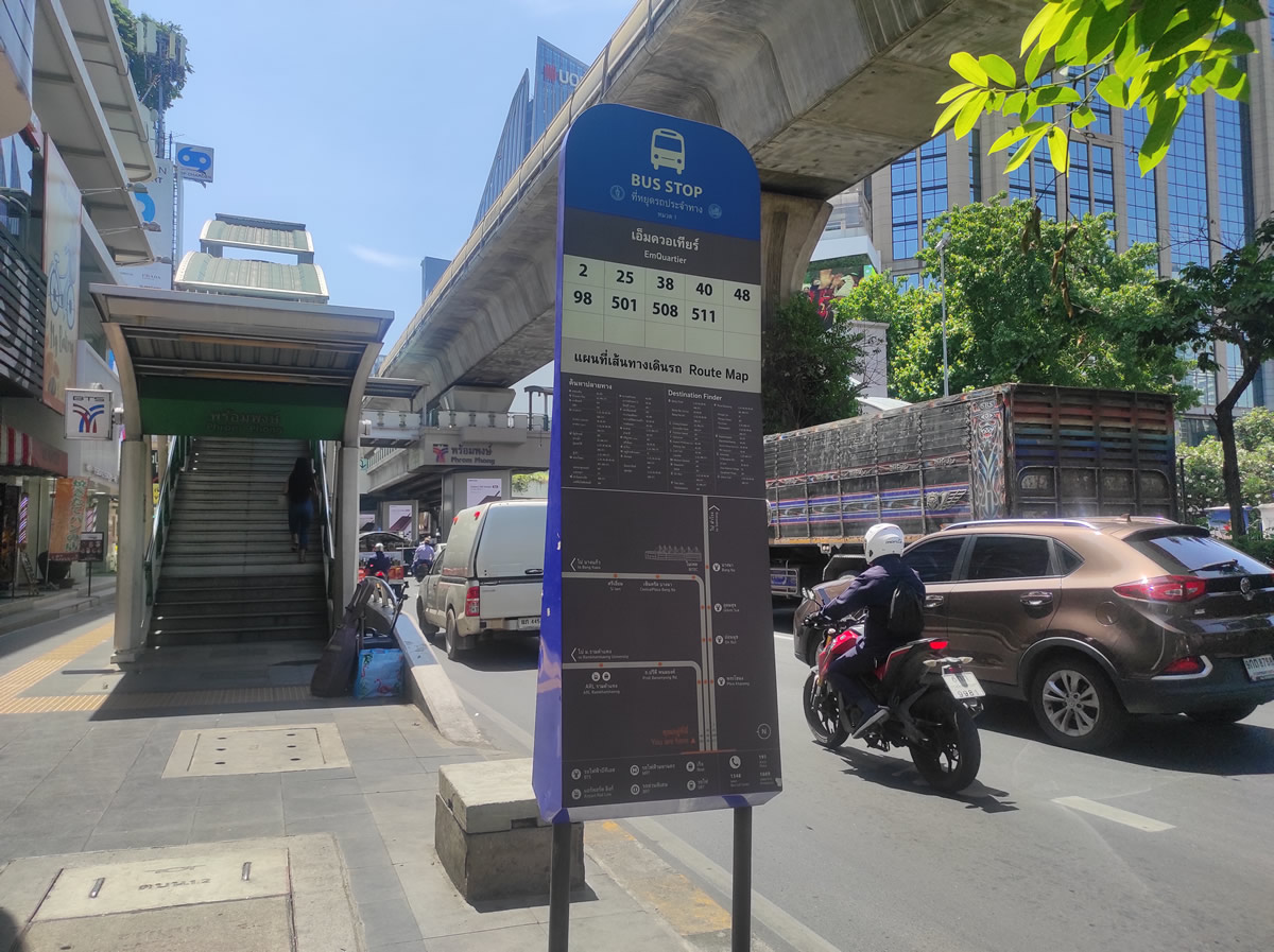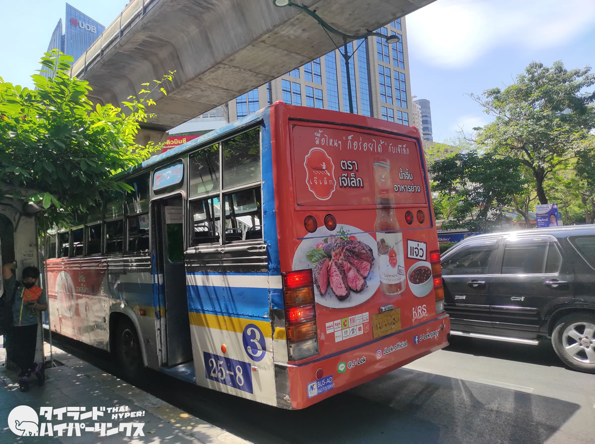 この日に乗車したのは、バンコク・スクンビット通りを走る白い25番のバス。目的地は歩いても5分ほどの距離でしたが、暑かったのでタイミングよくやってきたノーエアコンバスに飛び乗りました。