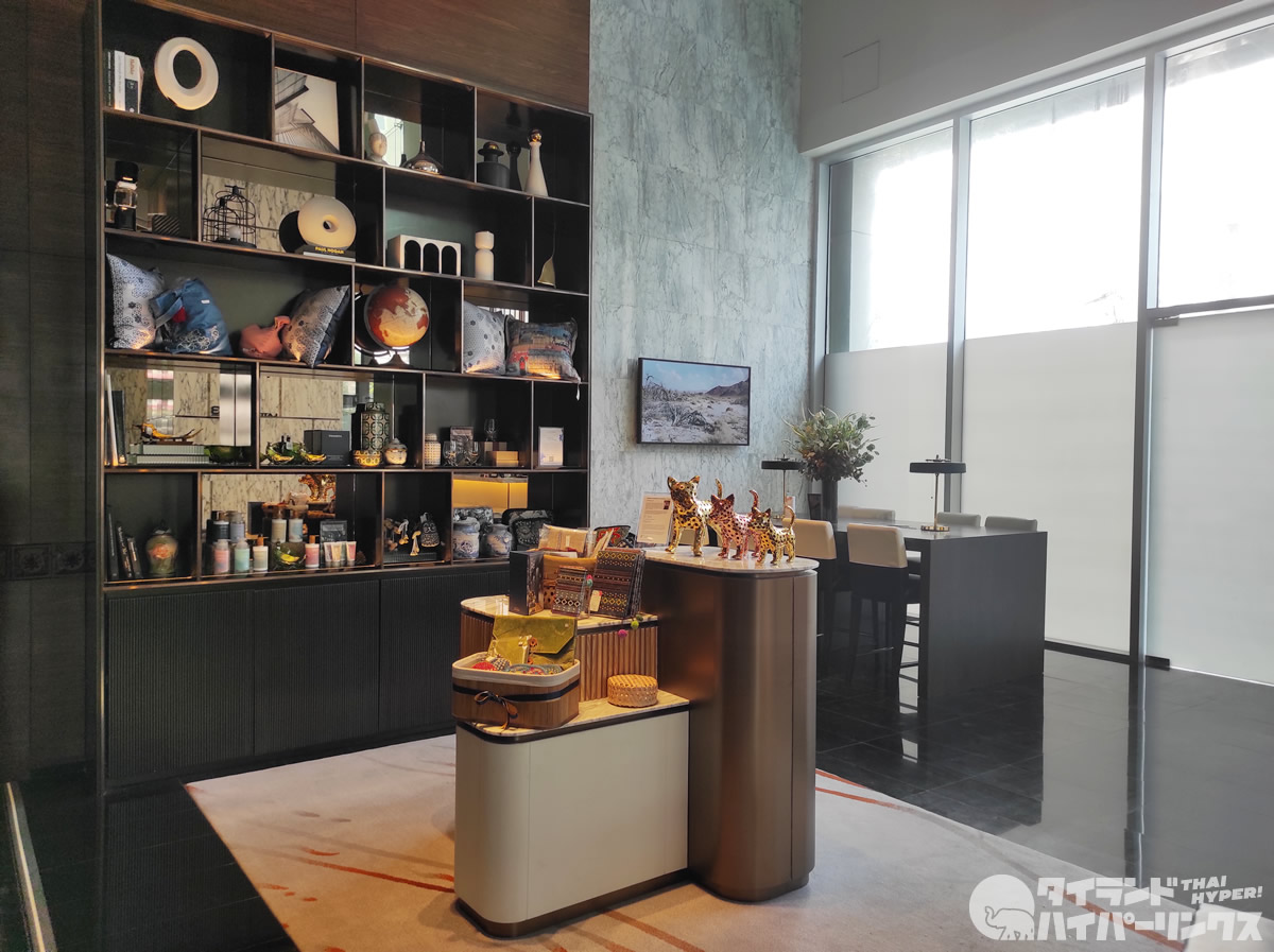 「Latitude 13°」の隣は、ギフトショップ。「ル・メリディアン バンコク」のシンボルであるドット犬 「アイジュッド」も購入可能です。