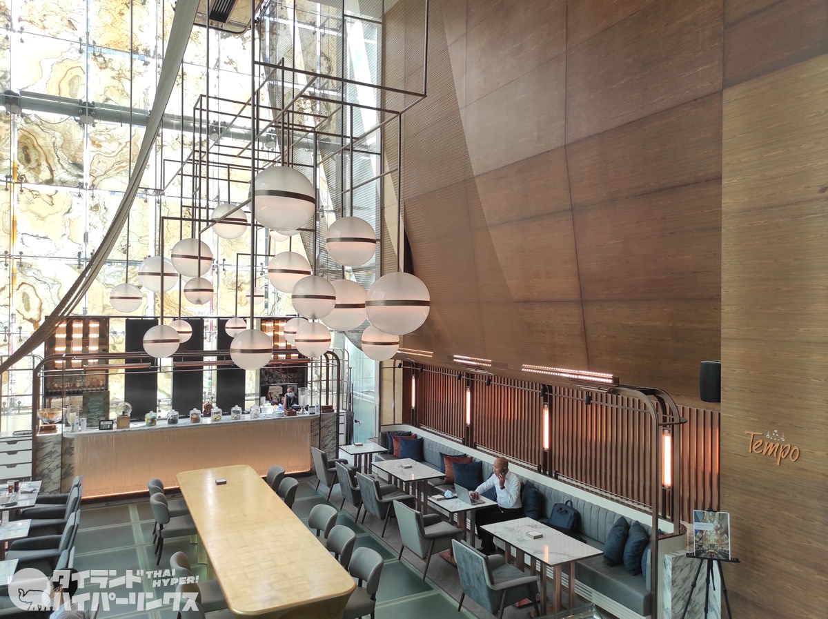 ロビーから階段を上がると、そこにはカフェ「TEMPO」があります。吹き抜け部分にあるので天井が高く、抜群の開放感。今回ここに寄ることはありませんでしたが、こんな場所で飲むコーヒーはまた格別でしょう。