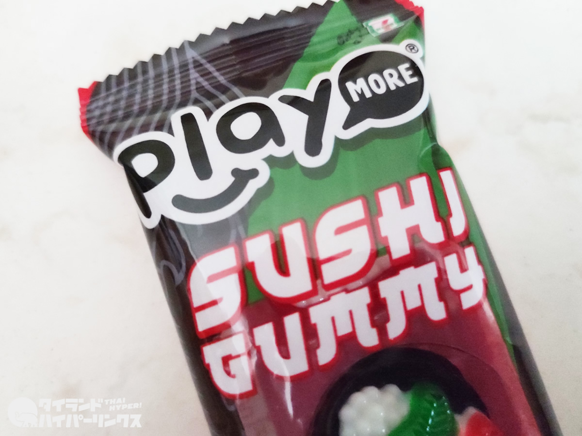 そんな中、コンビニのレジ横に置いてあったのを見つけたのが寿司の形をした「SUSHI GUMMY」。価格は一つ25バーツでした。