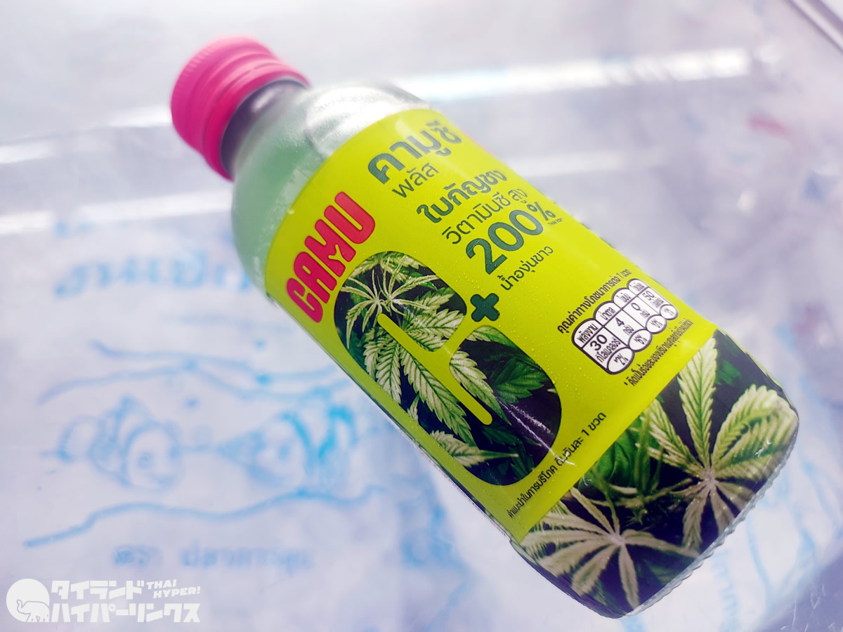 そんな中で見つけた新商品が、大麻成分入りの「CAMU C」で、150ml入り25バーツ。公式Facebookページによると、これを飲むことでストレスの軽減に繋がるのだとか。今のところ、セブンイレブン限定販売になっています。