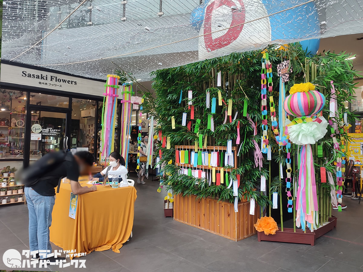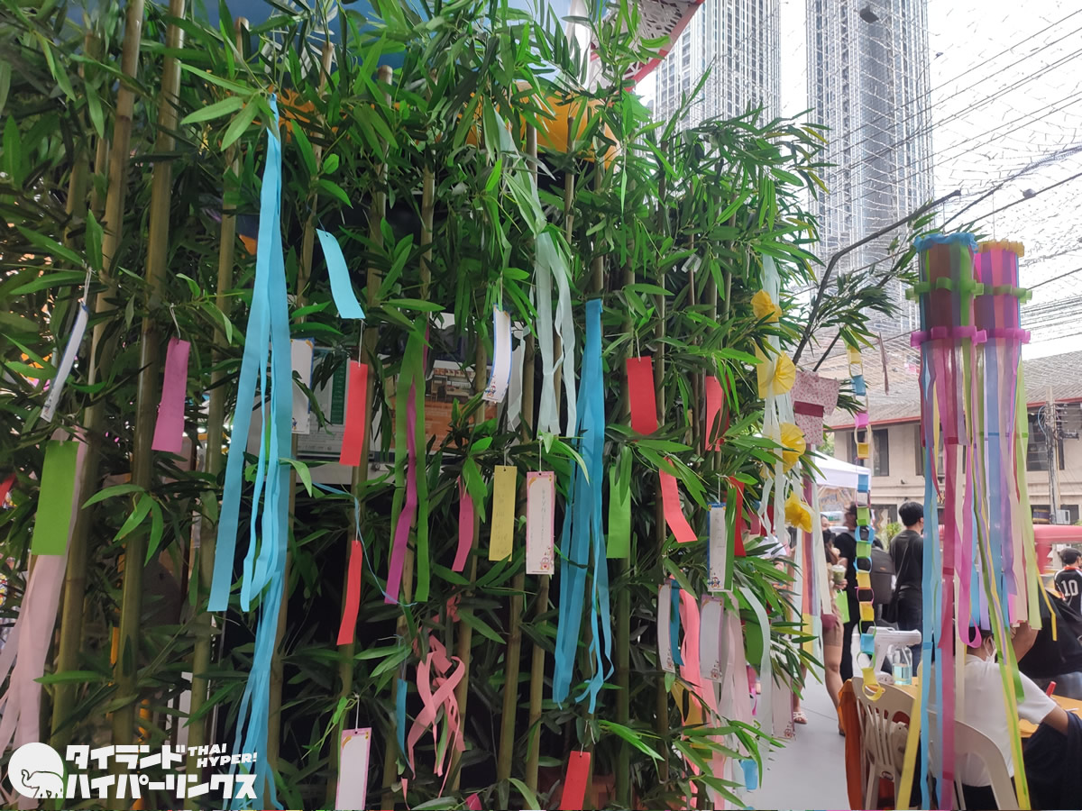 今年はまだ「カスタードナカムラ」の七夕飾りを見に行けていないのですが、トンロー通りソイ10(エカマイ通りソイ5)にある「ドンキモール・トンロー」に行ってみると、ここでも七夕飾りがありました。