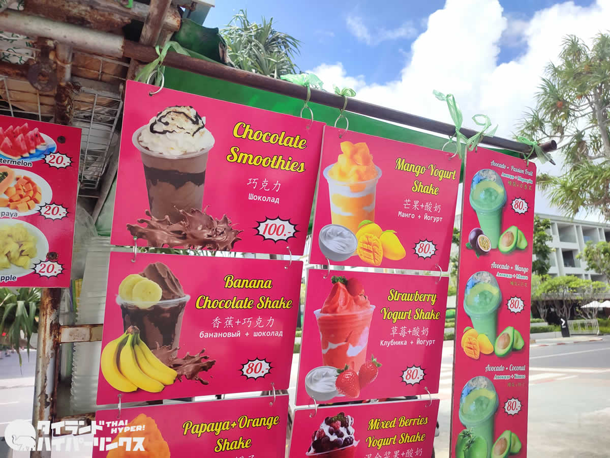 そんな中で選んだのは「マンゴーヨーグルトシェイク」。価格は80バーツなので、日本円にして約300円。物価が上がってきいるタイですが、まだまだ安いですね!
