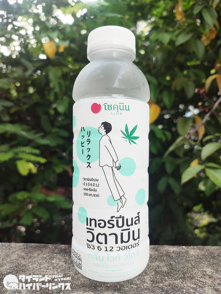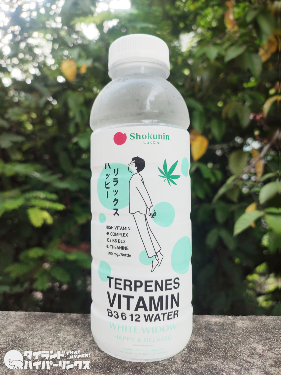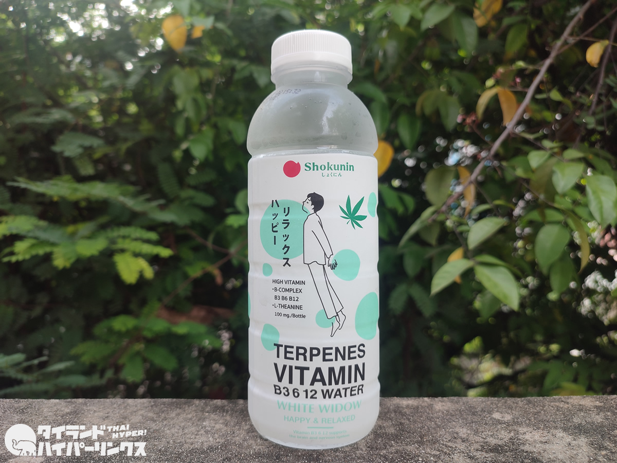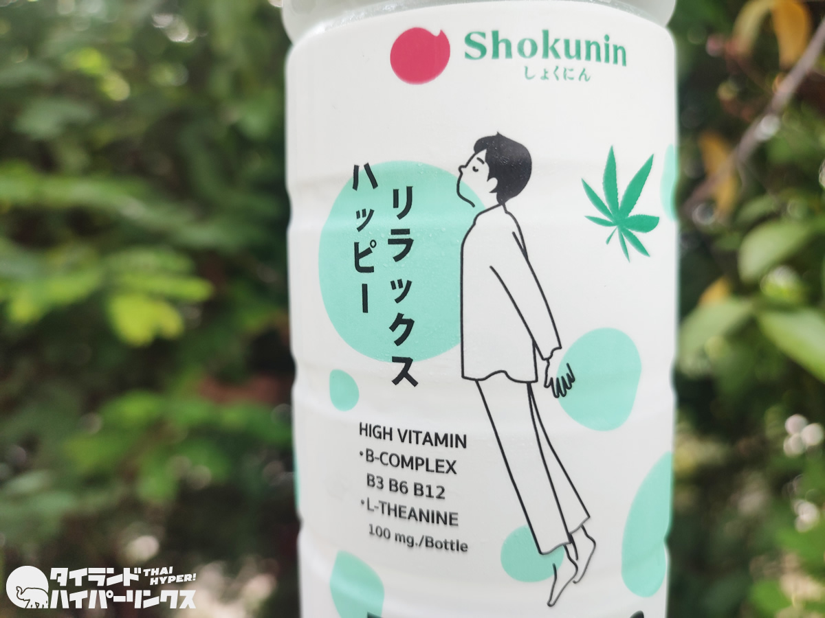 スーパーマーケットのLotus’sで購入したのが、パッケージに日本語で「ハッピー リラックス」と書かれ、大麻の葉が描かれた「Shokunin Vitamin Water」です。