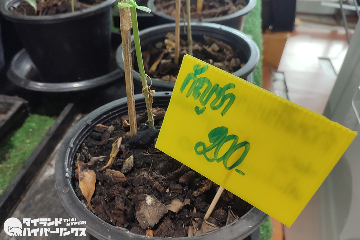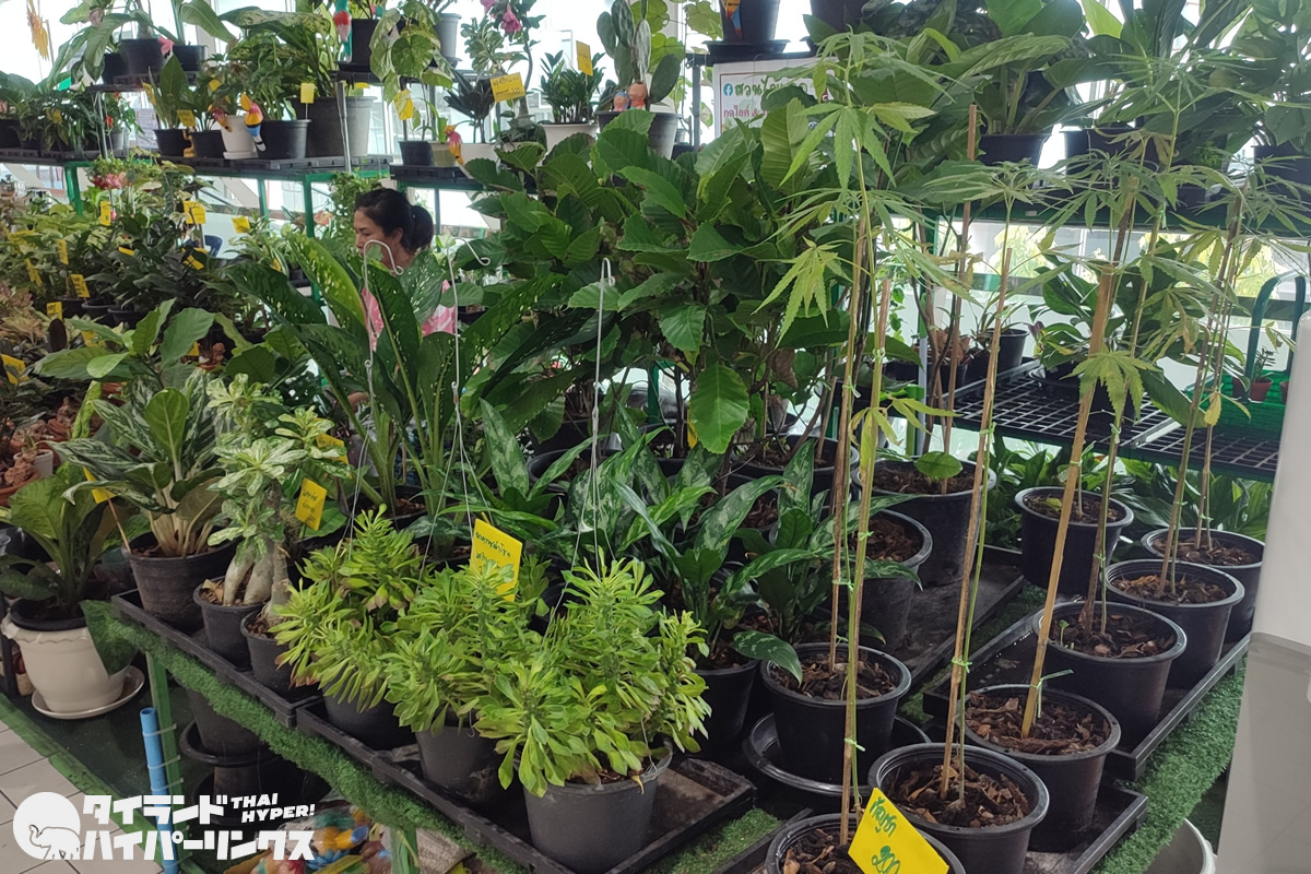 この日訪れたのはバンコクの某大型スーパーマーケット。その一角の小さな園芸ショップでは「กัญชา(ガンジャー)」と書かれた大麻の鉢植えがいくつも並んでいました。価格は1つ200バーツ。