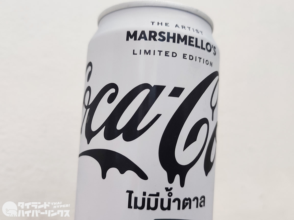 コンビニで白い缶のコカ・コーラ「Coca-Cola ZERO SUGAR THE ARTIST MARSHMELLOS LIMITED EDITION」を発見。アメリカの覆面DJマシュメロ(MARSHMELLO)とのコラボ商品です。