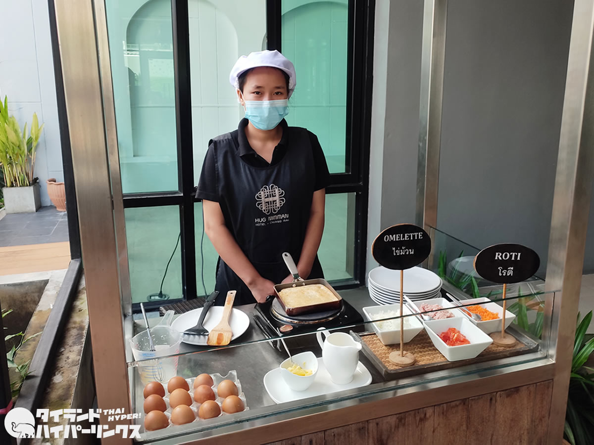 なお、屋外のエリアにはオムレツとロティのコーナーが設置されています。「ホテルの朝食では玉子料理のオーダーは欠かせない!」という方も安心です。