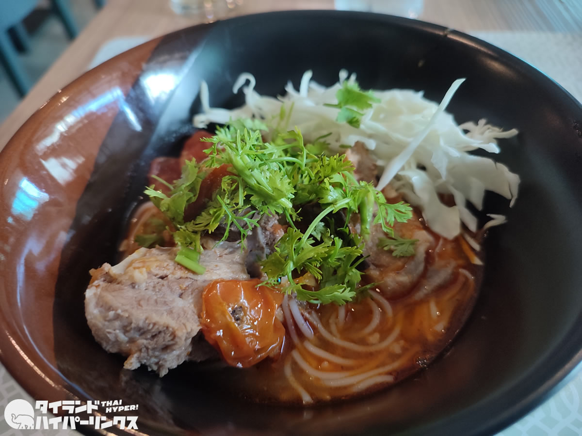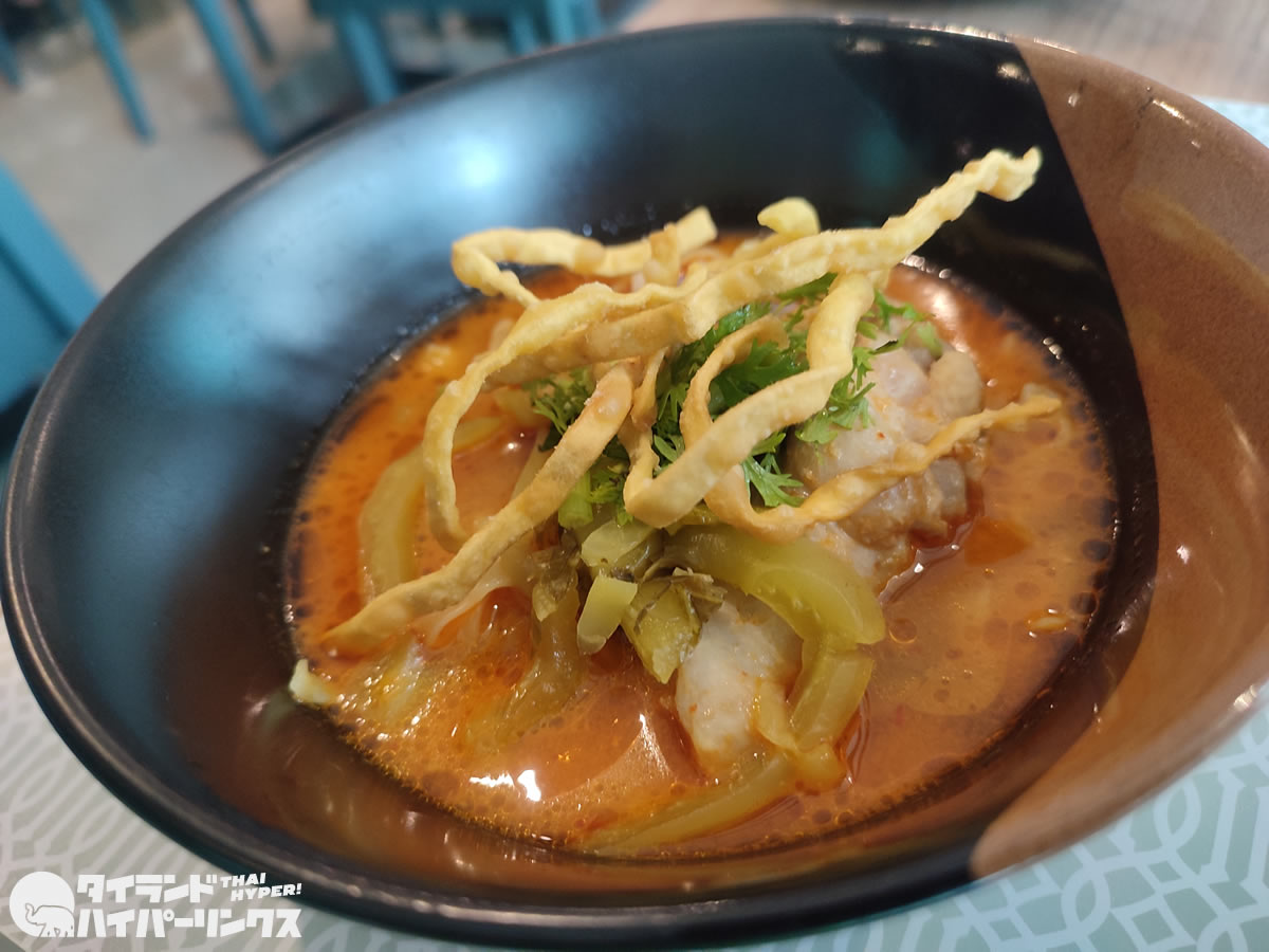 翌日のラインナップには「カオソーイ」と「ゲーンハンレー」はありませんでしたが、「カノムチンナムギアオ(ขนมจีนน้ำเงี้ยว)」が用意されていました。これも北タイ名物で、好物の1つ。