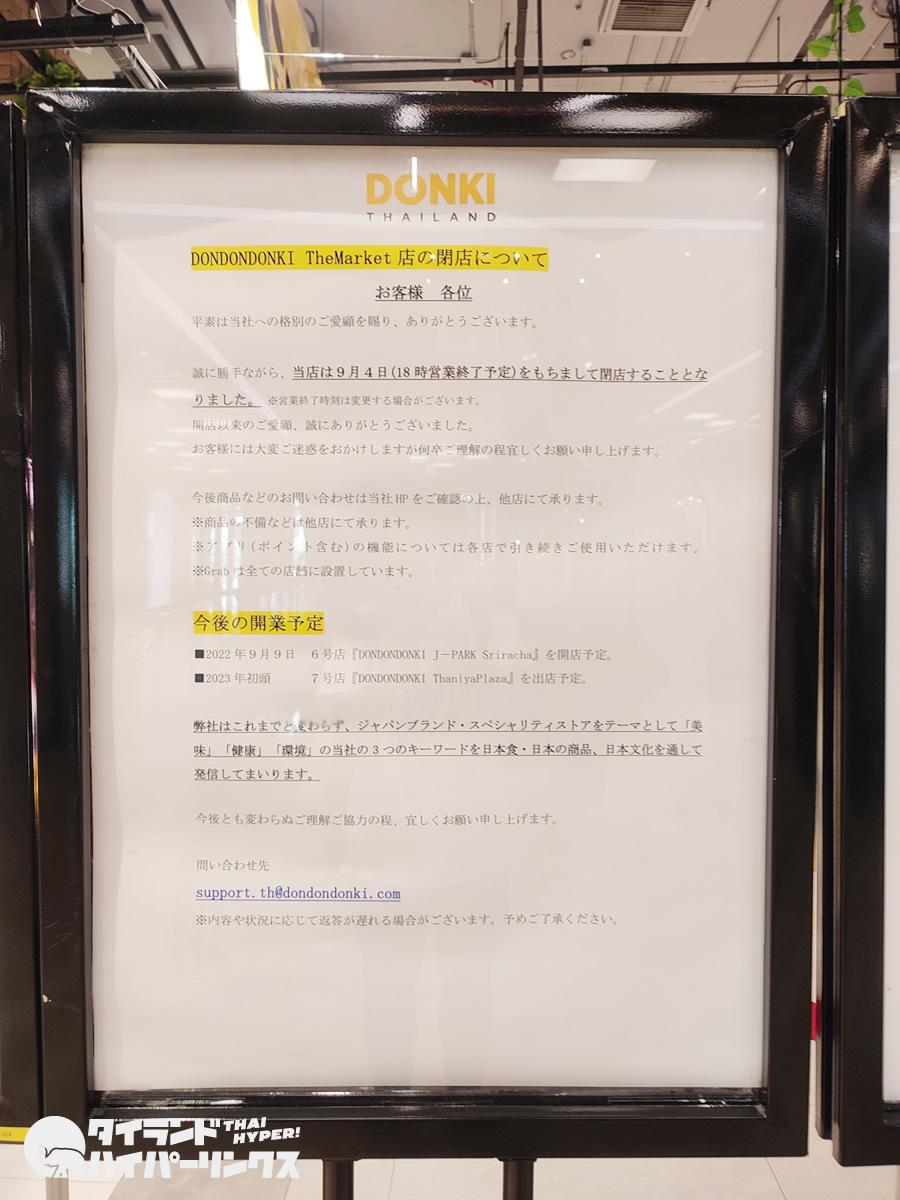 なんとザ・マーケットの「DON DON DONKI」は、2022年9月4日を最後に閉店していました。タイ進出2号店として開店したのが、2019年2月だったので、3年半での撤退です。