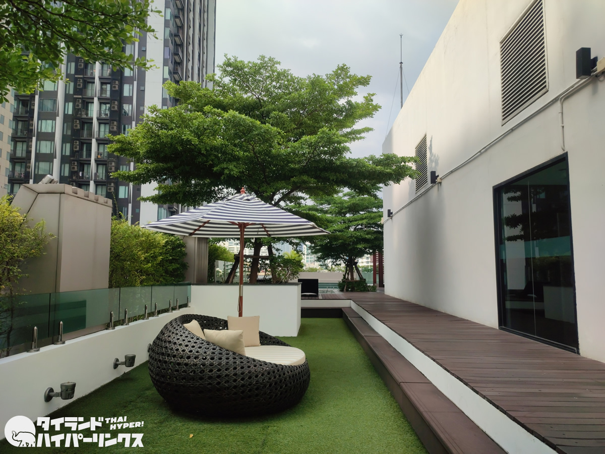 屋上にあるのが駐在員の味方であるゴルフ練習場。ゴルフに気軽に行けるタイではコースに出る機会も増えると思いますが、「アッパースイーツ」の屋上でたっぷりと練習ができます。