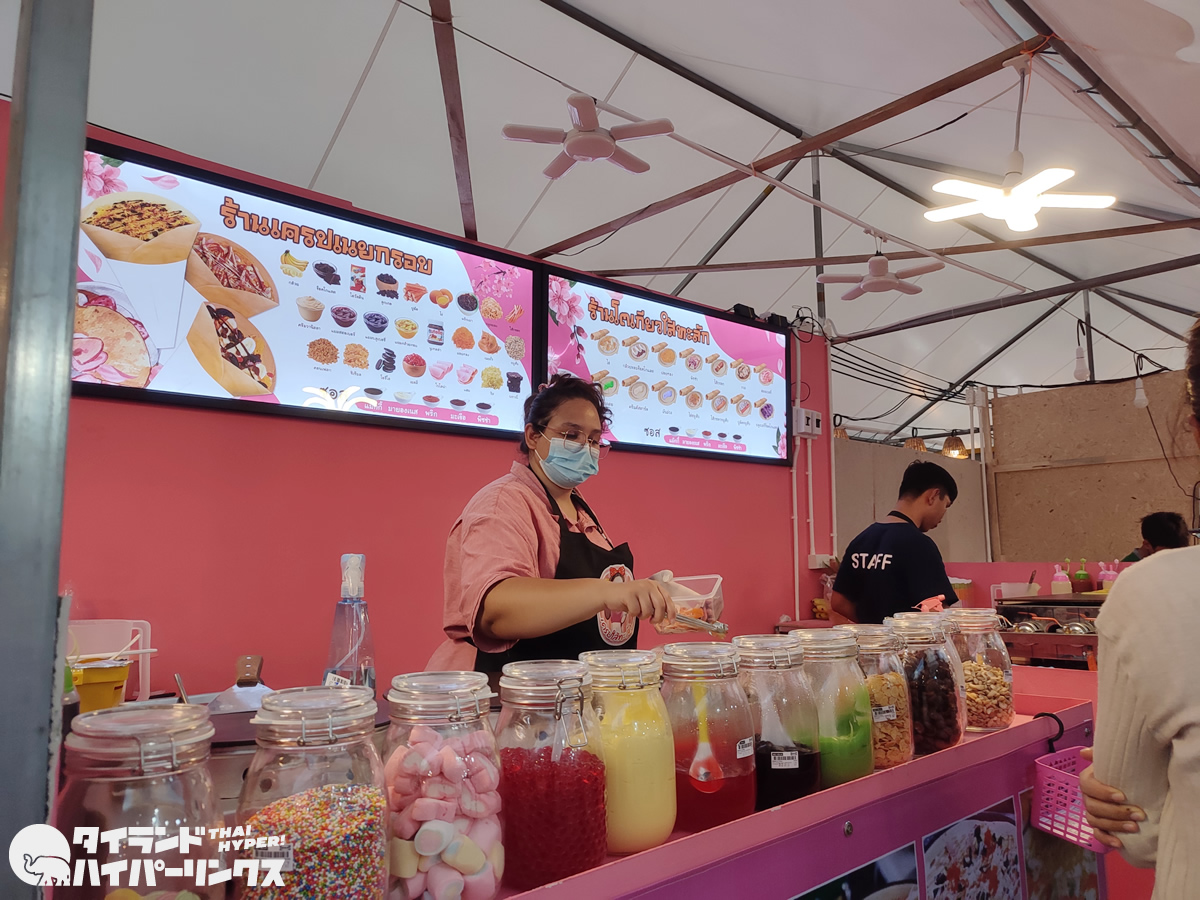 グルメエリアは、ファッションエリアよりも多くの人で賑わっています。これから夕食時なので、どんどん人が集まってくるでしょう。