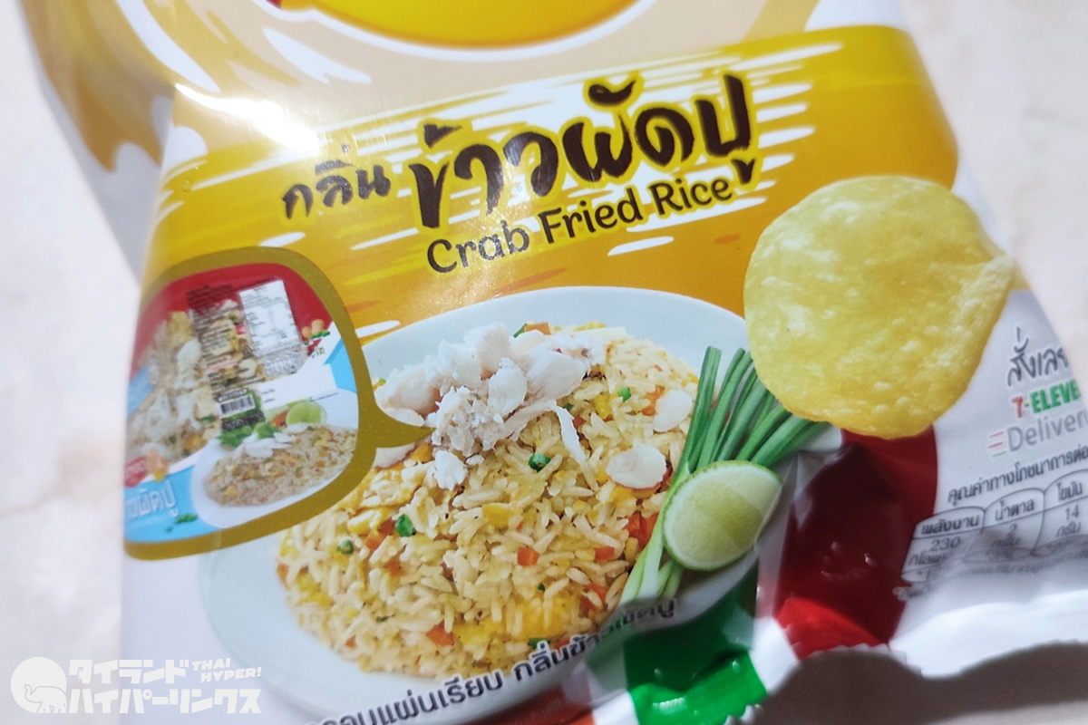 カニチャーハンは、タイ旅行でシーフードレストランへ行くと注文する人も多いのではないでしょうか。なお、今回ポテトチップスになったのは、セブンイレブンで売られている、お弁当のカニチャーハンです。