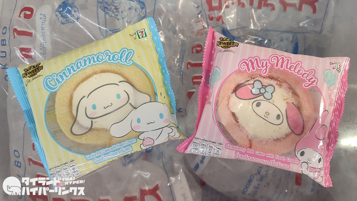 生クリームの「ロールケーキ」には、シナモロールとマイメロディが描かれていて、価格は1つ30バーツ。