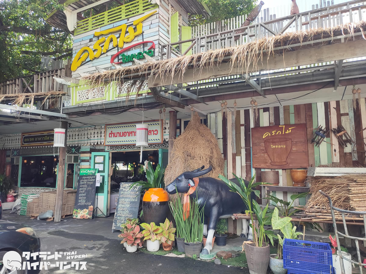 珍しい食材があるイサーン(タイ東北)・ラオス料理レストランがあると聞いて向かったのが、バンコク・ラプラオ区のラプラカオ通り24にある「クロックマイタイラオ(ครกไม้ไทยลาว)」です。