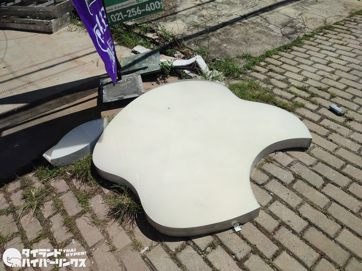 そして、この日の一番の発見が腐った(?)リンゴ。壊れたAppleのロゴが、捨てられず路上に放置されていました(笑)。