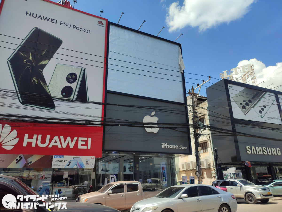 ドンパーラーン通りを歩くと、VIVO、OPPO、Huawei、Samsungなどの各スマホブランドのロゴが入った看板のお店が並んでいます。
