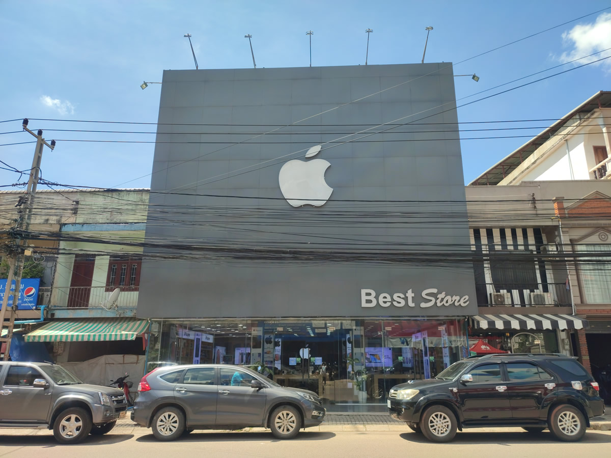 ここはタイのお隣ラオスの首都ビエンチャン、沢山の携帯電話ショップが並ぶ電脳街ドンパーラーン通り(Dongpalane Rd ຖະໜົນດົງປ່າລານ)です。