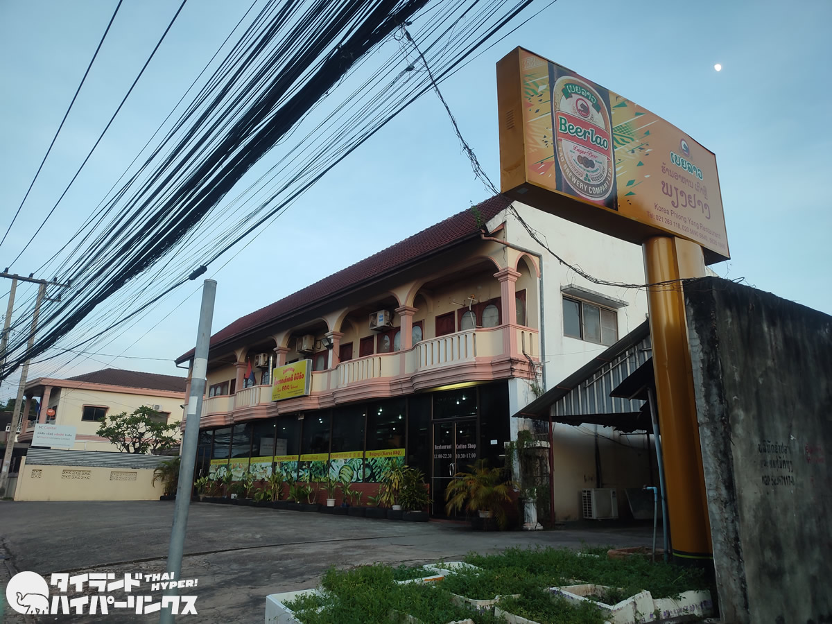 北朝鮮レストランがあるのは、ビエンチャンのNongbone通り。洒落たレストランや洒落ていないレストランが点在する通りですが、中でも洒落ていない分類に入るであろう「平壌レストラン」です。