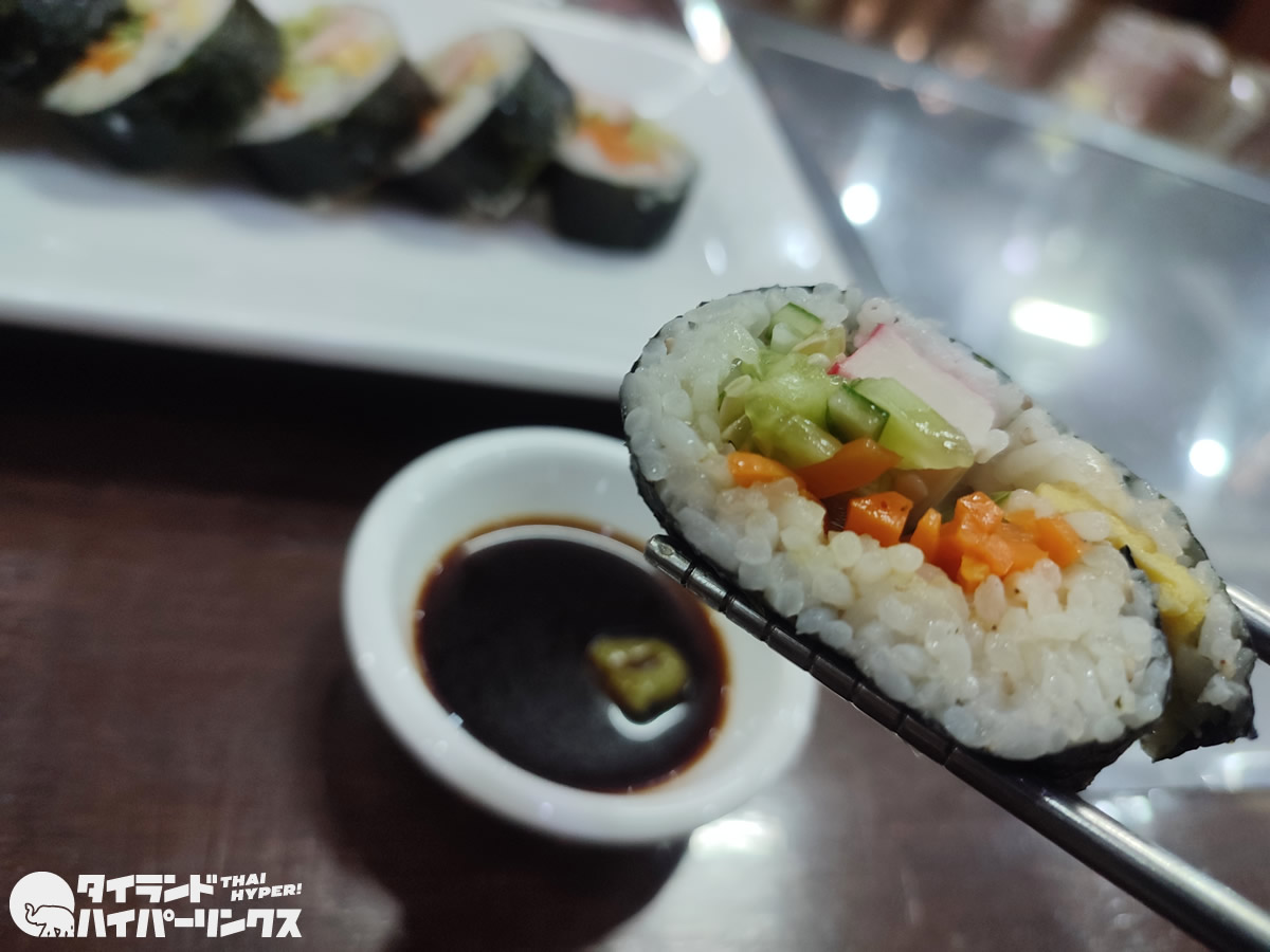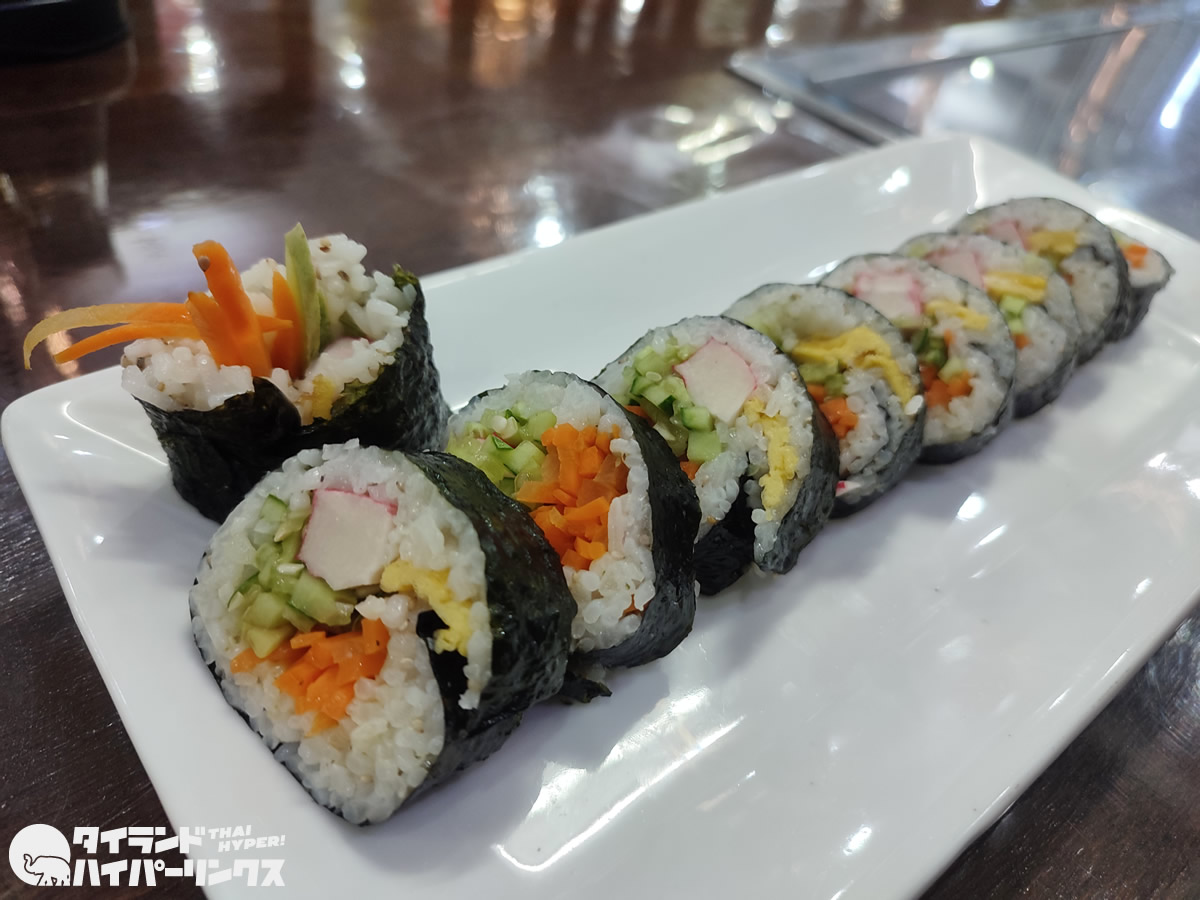 朝鮮海苔巻きキンパブは、下の写真の量で4ドル。