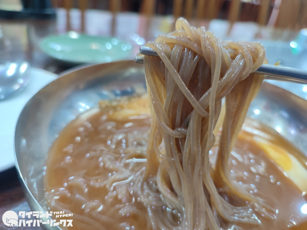 運ばれてきた冷麺は100グラムで4ドル。200グラムになると6ドルになります。