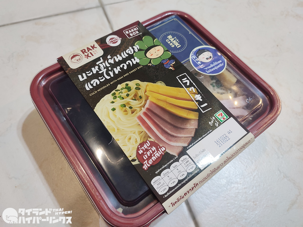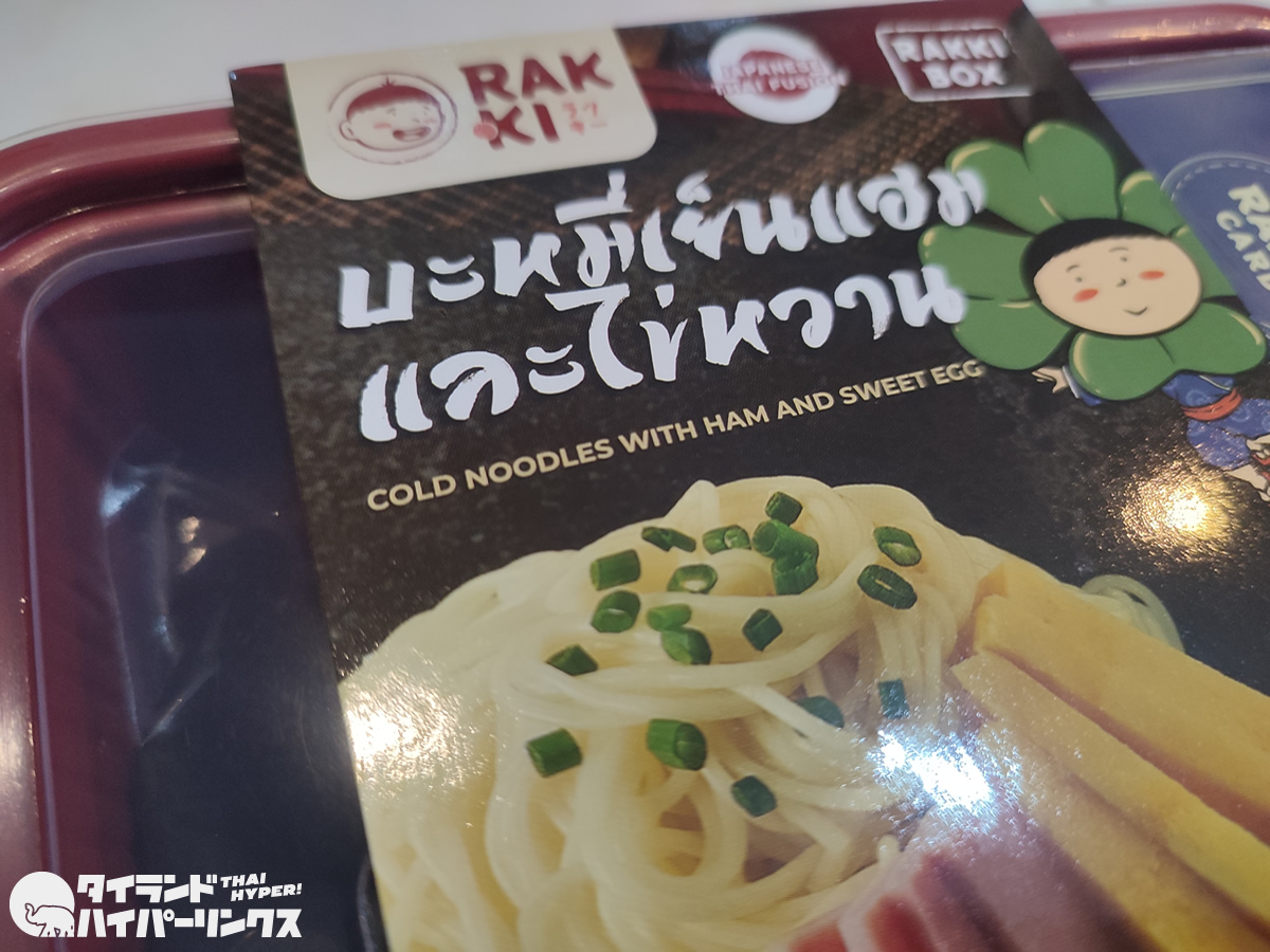 「RAKKI」のラインナップは日本語にすると・・・「牛肉とスクランブルエッグ乗せご飯」「和風ソースフライドチキン乗せご飯」「オムライス」「冷やし中華」。どれも60バーツ強で、タイ料理弁当シリーズよりは20バーツほど価格が高いです。