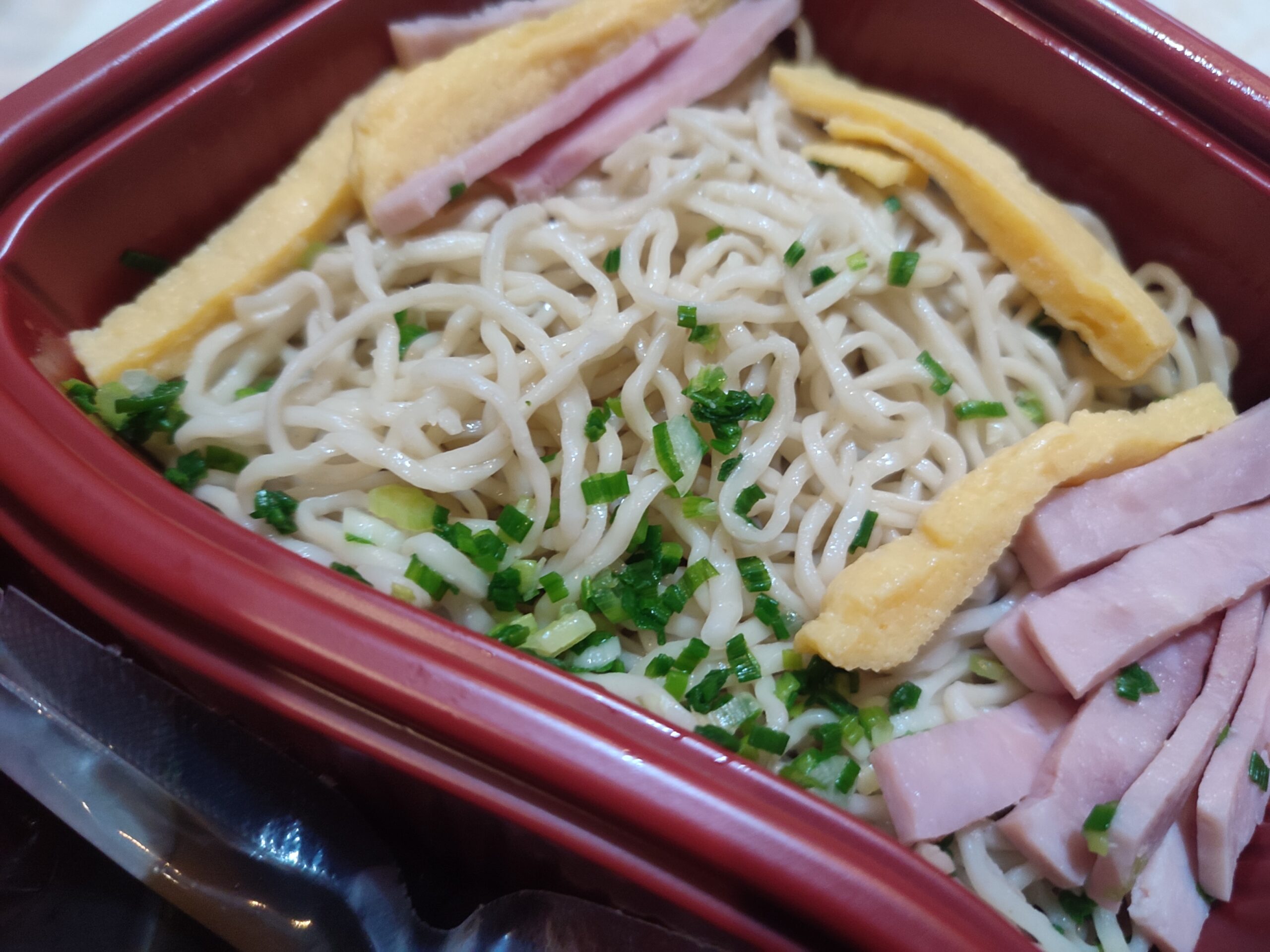 醤油ベースのシンプルな冷やし中華ですが、この価格のコンビニ弁当と思えば充分美味しく食べられるのではないでしょうか。また、全部で280グラムと量が多いのも嬉しいですね。一食あたり320キロカロリーです。