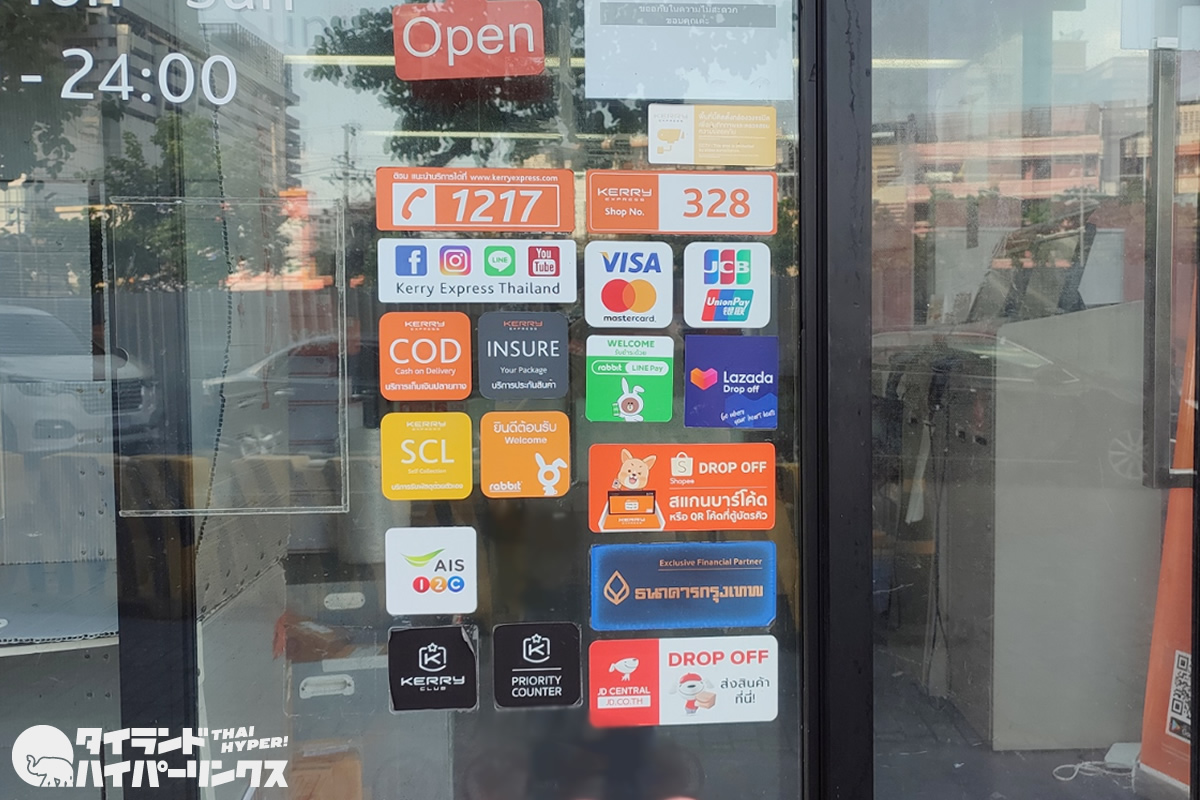 下の写真は大手配送会社の「Kelly」の店舗入口。色々な支払い方法があるようですが、アメックスはありません。