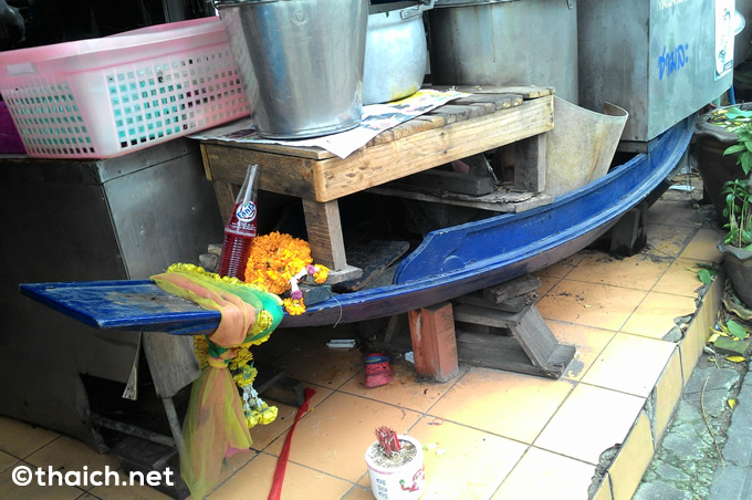 ボートヌードルとは、豚(または牛)の血入りのスープが特徴のタイヌードルで。以前は小さなボートの上で調理して販売されていたことから、「ボート(タイ語ではเรือ ルア )」の名が料理名に入っています。街中では、店頭にボートが飾られていることが多いので、ボートヌードルのお店はすぐにわかります。