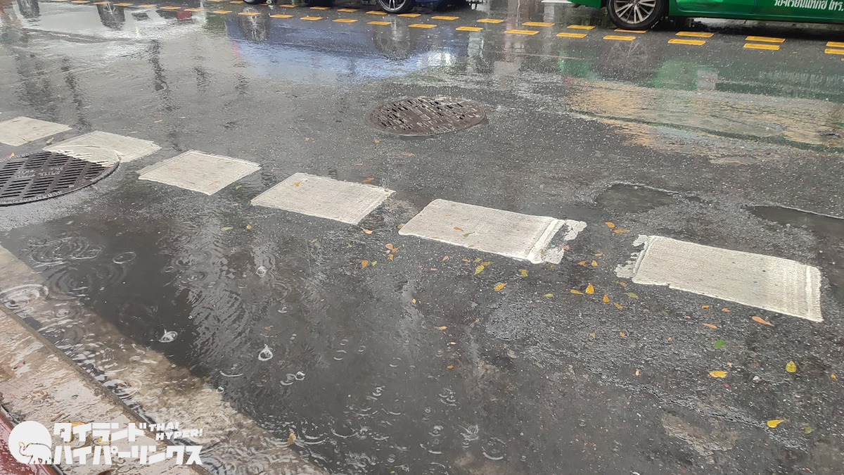 バンコクの道路はそれほど悪くないとは言っても、やはりデコボコな箇所も少なくなく、大雨が降るとすぐに水がたまります。すると、そこに車がやって来て、水たまりがあってもスピードを落とすこと無く、豪快に水はねをするわけです。これまで何度被害に遭ったことか。。。