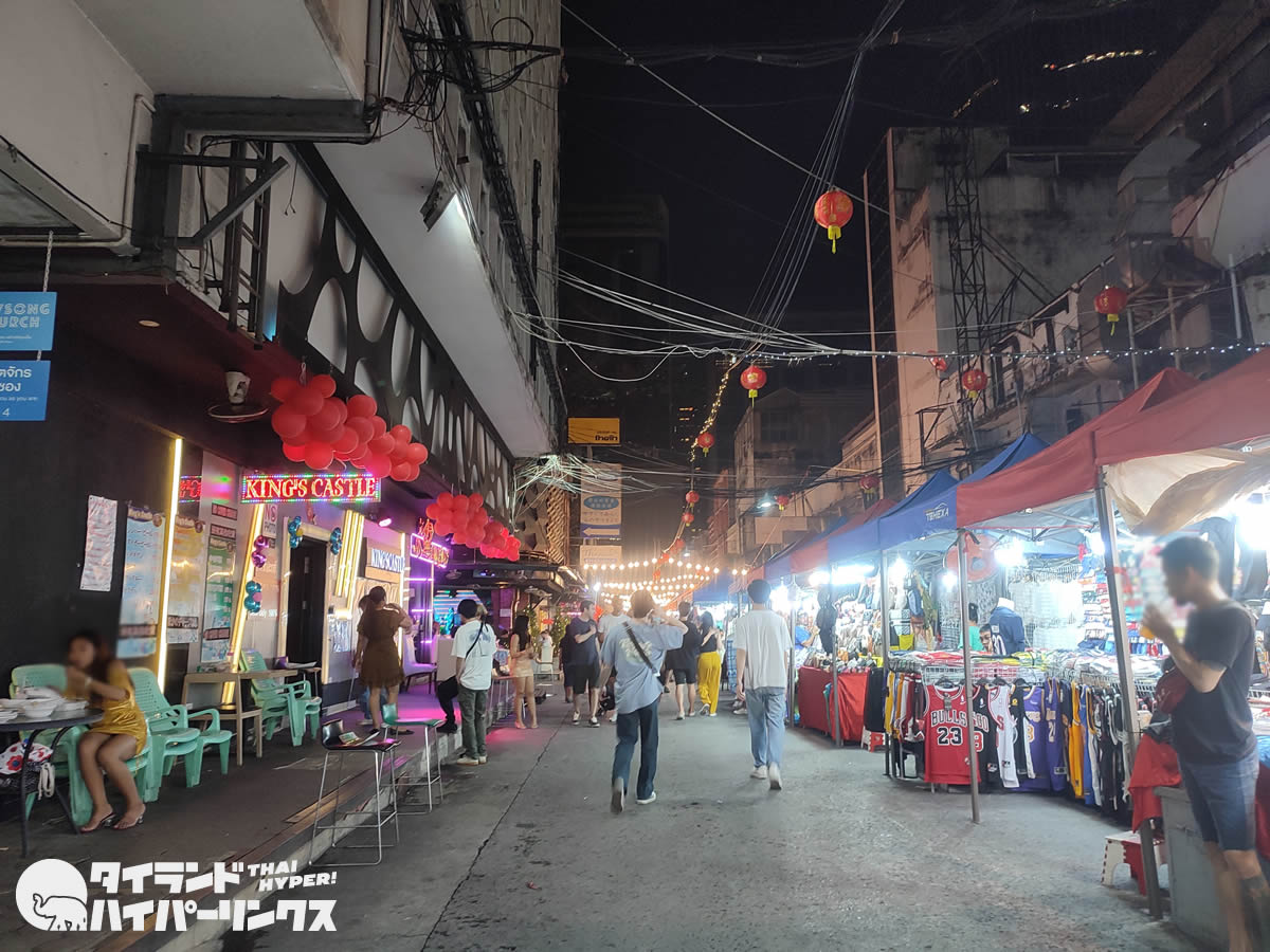 パンデミック前は溢れるほどに旅行者がいたパッポン通り。2023年2月現在は露店は出店しているものの、かつての半分ほどでしょうか。人通りも大分少いようです。