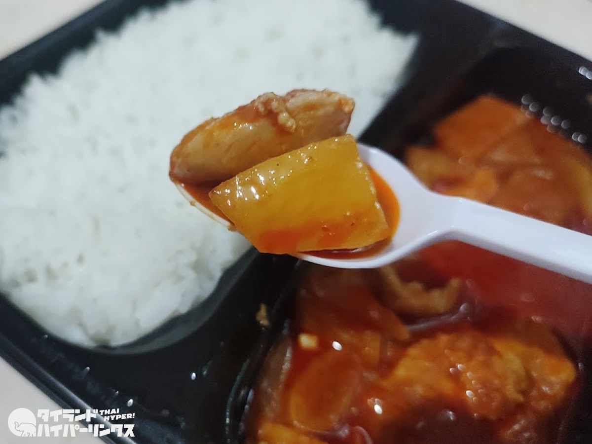 そんな中でセブンイレブンでは鶏肉とじゃがいもの「マッサマンカレー」の弁当を発売しました。価格は59バーツ。十分マッサマンカレーの美味しさが伝わるはずなので、ちょっと試してみたいという旅行者にはもってこいですね。