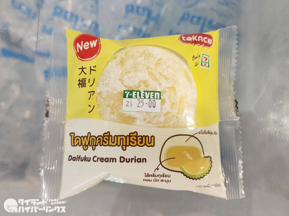 そんな中、セブンイレブンで新発売の「ドリアン大福」を発見。1個25バーツ(約100円)ということで、早速買ってみました。