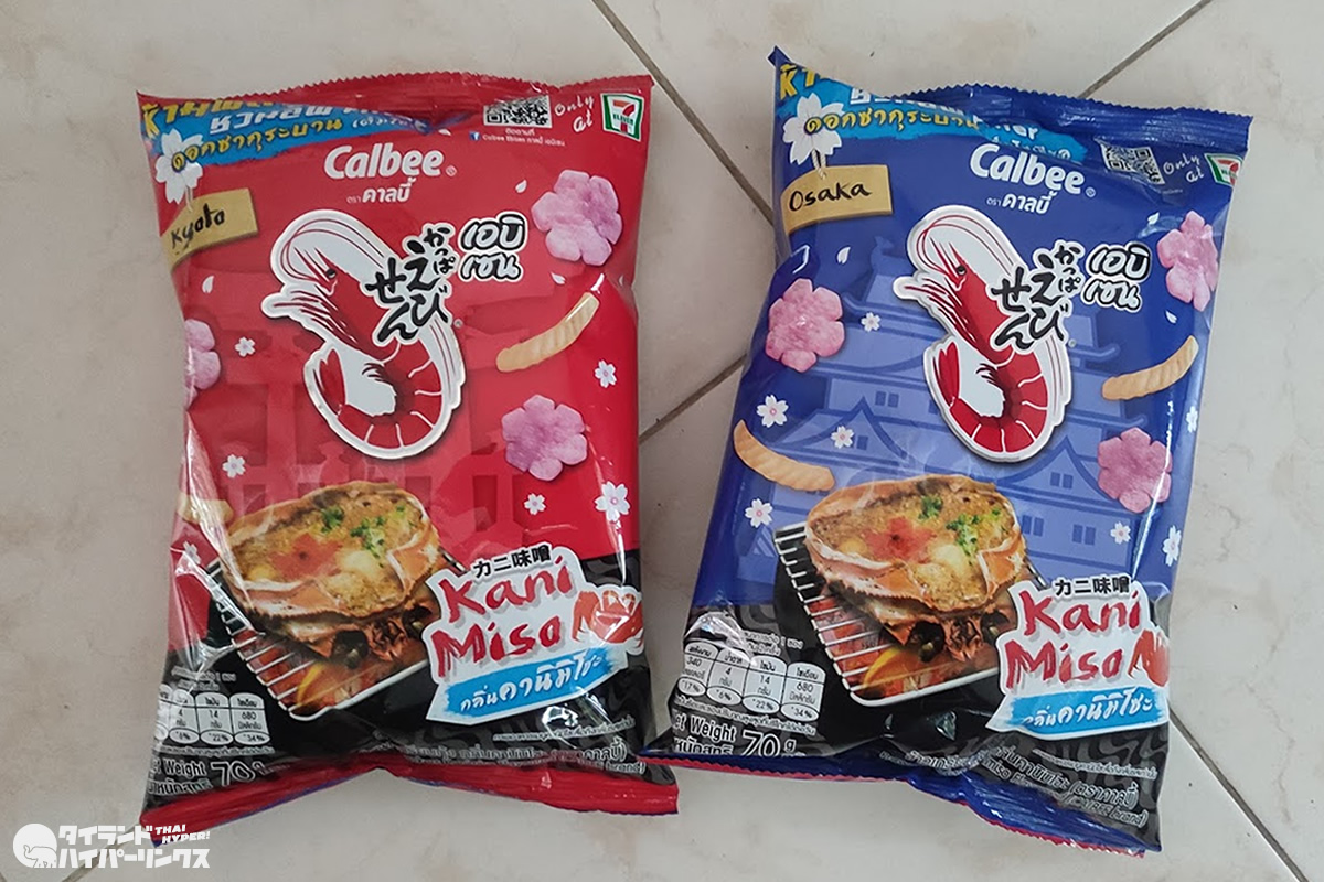 タイの「かっぱえびせん カニ味噌」、京都と大阪のパッケージ