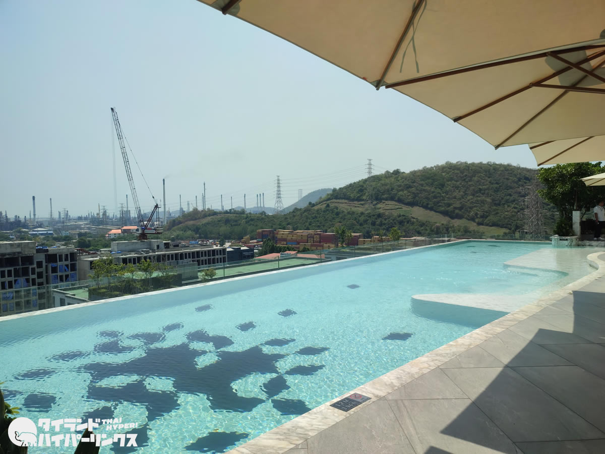 工場ビューのプールは、体を動かし、そして癒やすには最適の場所。ここから仕事へ通っている駐在員も出張者も、水着の用意は忘れずに。