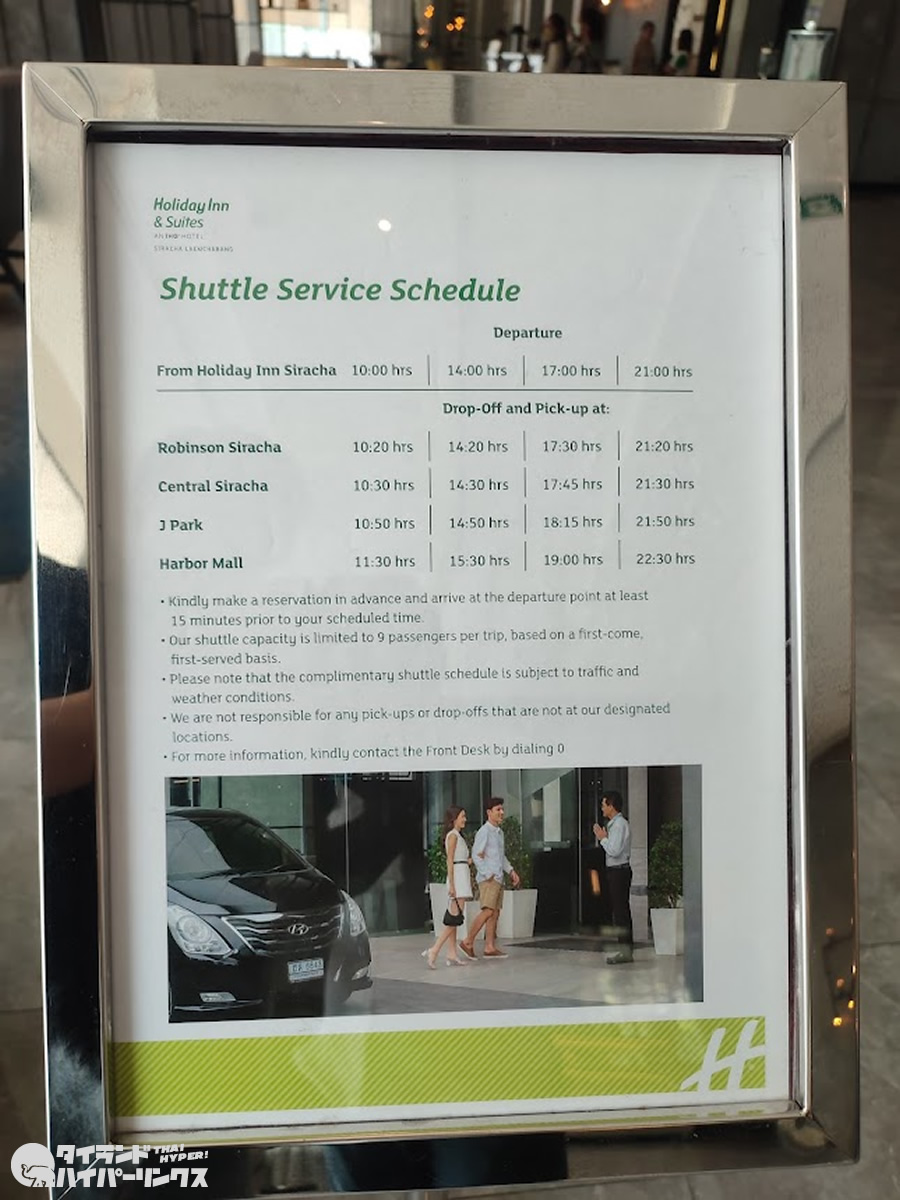 また、街中へ出るには無料のシャトルサービスの利用が可能。ロビンソンやセントラル・シラチャ、ドンキも出店しているJパークやHarborモールへ移動できます。上手に利用したいですね。