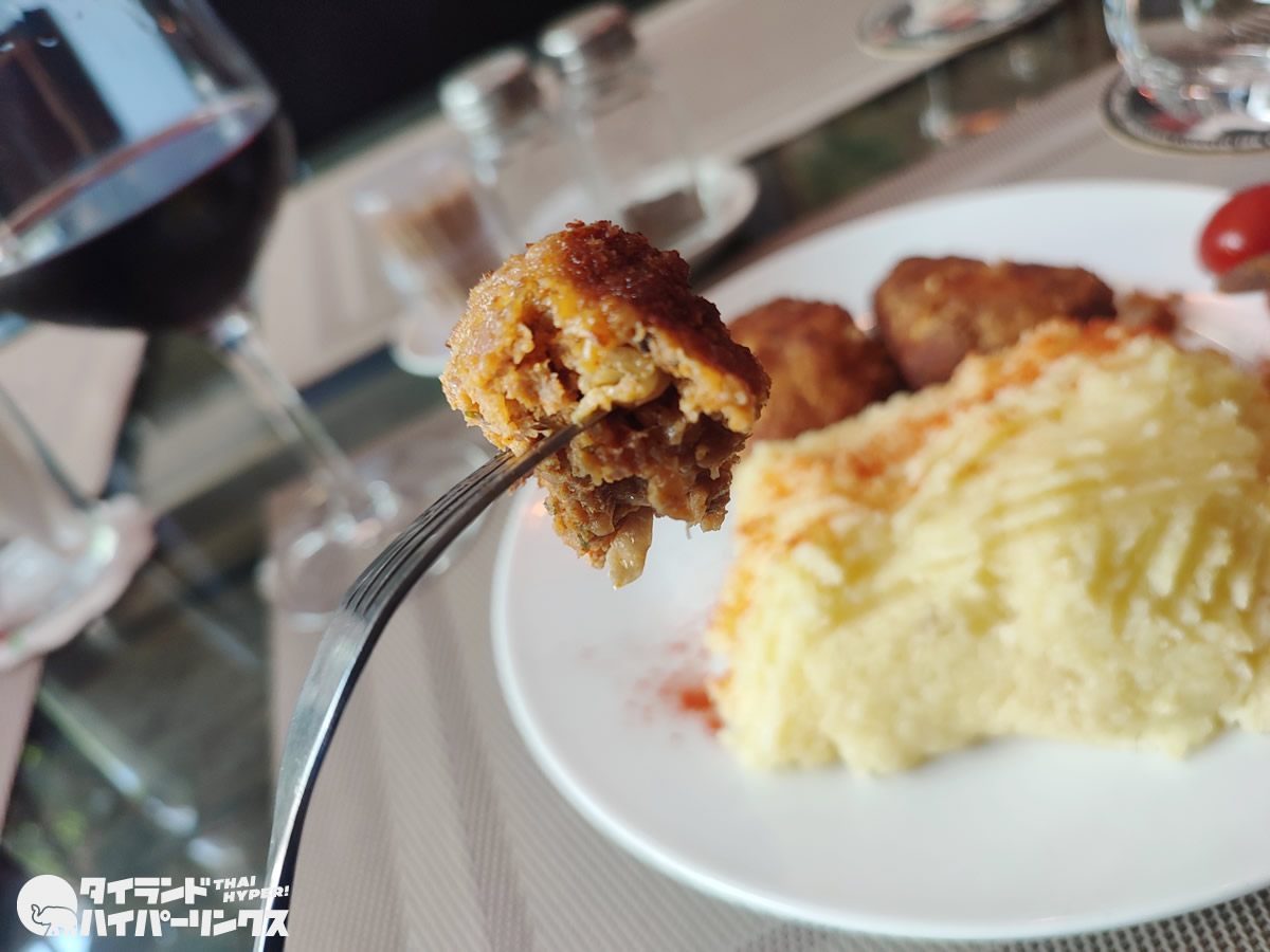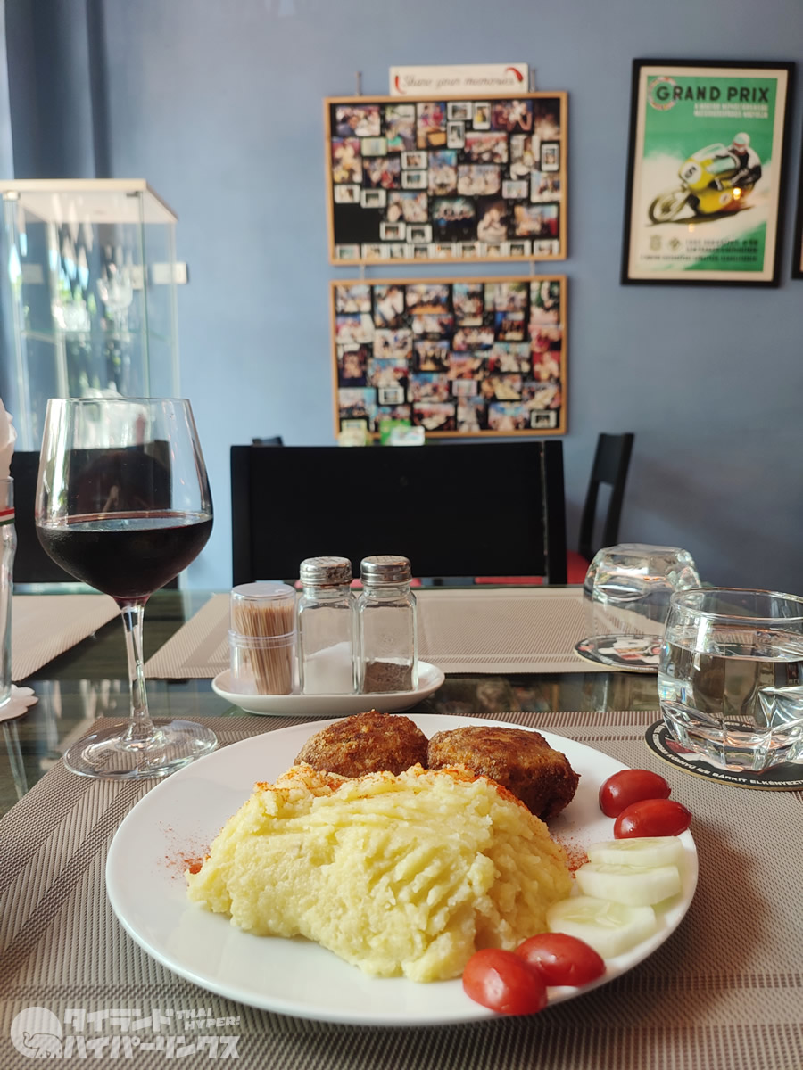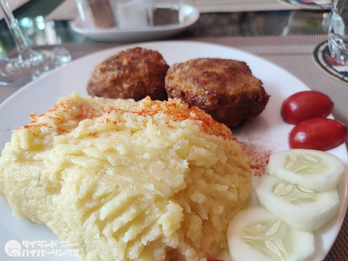 そしてメインの登場ですが、マッシュポテトの量!ハンガリー人はこんなに芋を食べるんですか!?そして肉団子は、ミニハンバーグという感じで意外とボリュームもあります。