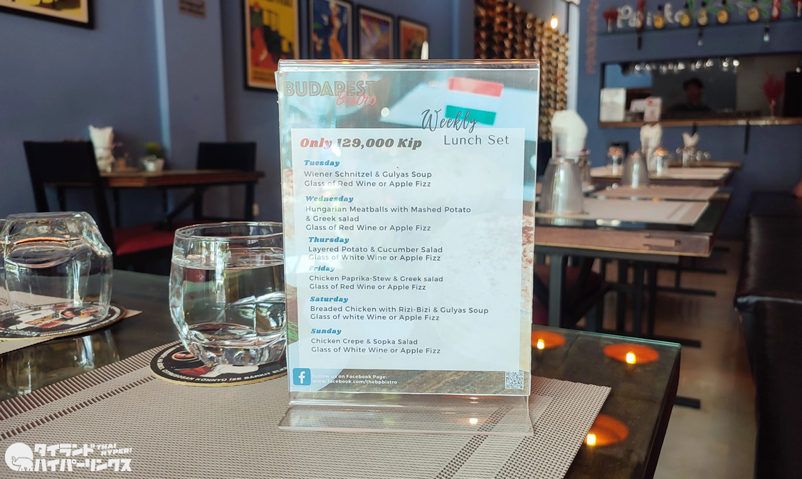 タイ領事館からも近いPhonesinuan通りにあるのが「Budapest Bistro」。ラオス唯一のハンガリー料理店だということでランチに行ってみました。