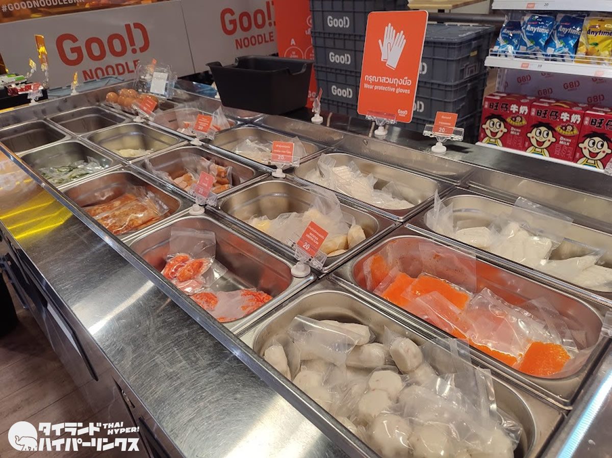 「グッドヌードル」はその場で調理できるインスタントラーメン専門店なので、肉や野菜などなど具材も揃っています。