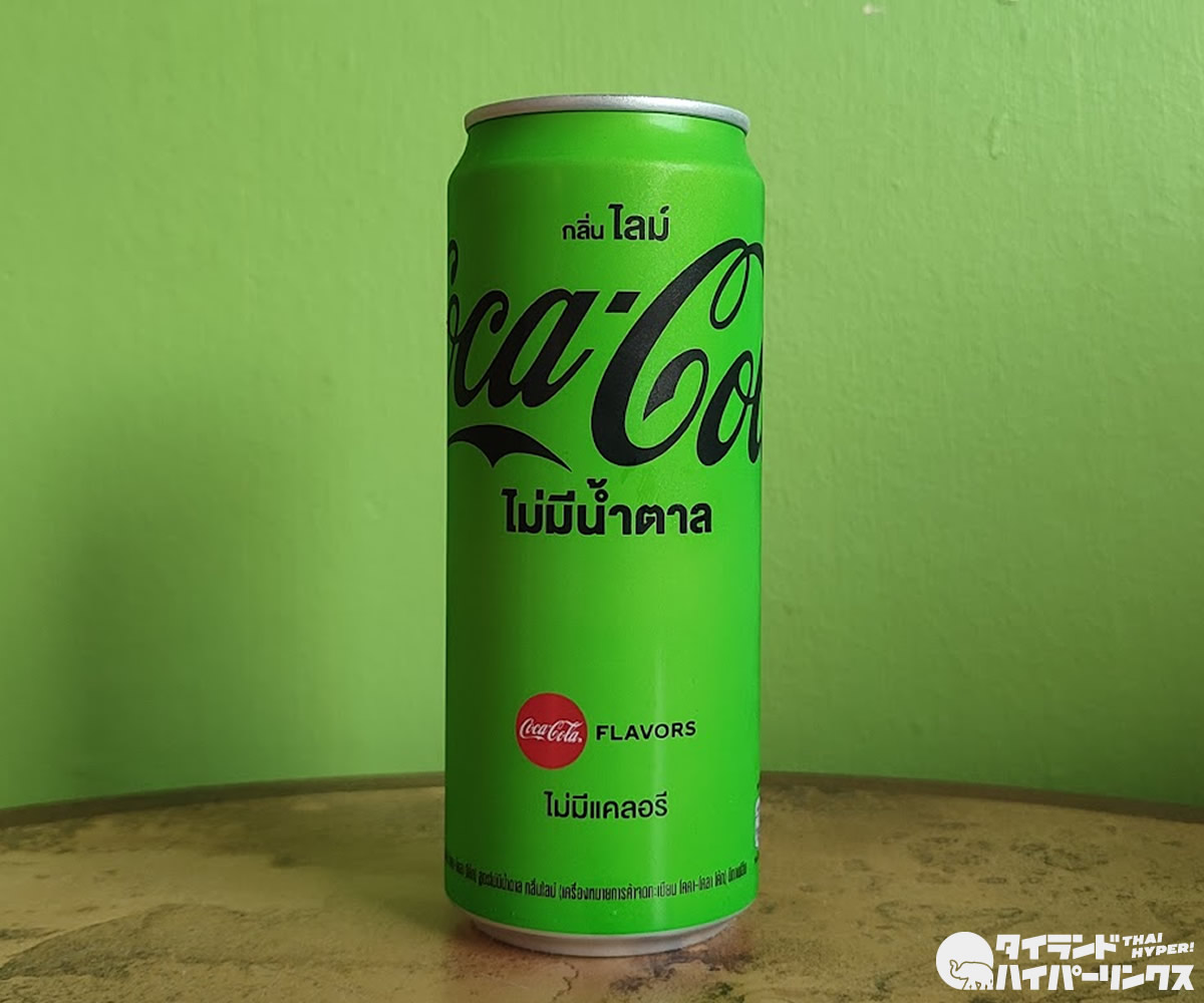 缶には「กลิ่นไลม์(クリンライム)」と書いてあってライムの風味なのだそうで、グリーンはライムの色なんですね。飲んでみると、爽やな風味が香ってきます。なお「ไม่มีนํ้าตาล(マイミーナムターン)」とあるので無糖です。
