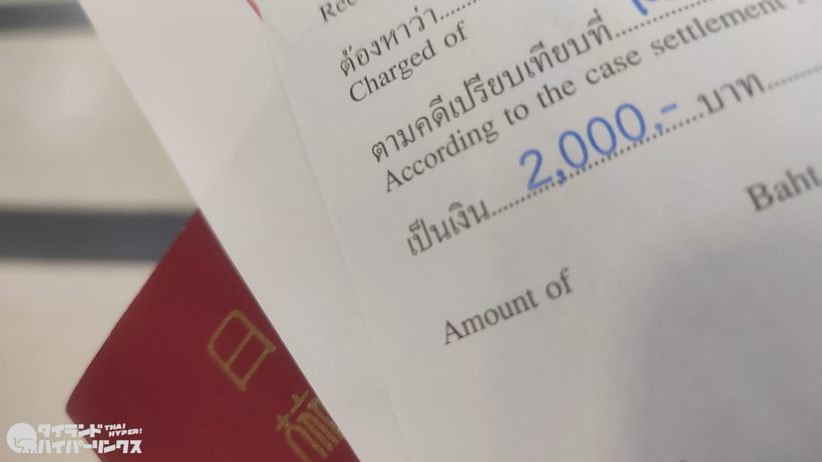 前回の90日レポートの提出証明と今回記入した用紙とパスポートを窓口に渡すと「じゃあ罰金2000バーツね」と言われたのでその場で2000バーツの支払い。ちょっとだけ移動して別の窓口で罰金の支払いの証明と90日レポートの提出証明を貰って終了です。「2,3日の遅れなら罰金はいらないよ」なんていうことはありませんでした、当たり前ですが。